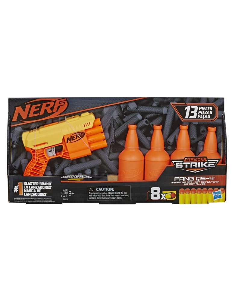 Pratique suas habilidades com o conjunto de alvos Fang QS-4 de 13 peças que inclui um lançador, 8 dardos oficiais Nerf Elite e 4 alvos que podem ser colocados juntos para criar dois alvos de garrafas. Fácil de usar: Carregue 4 dardos, puxe a alavanca de disparo e pressione para lançar 1 dardo. Os lançadores da Alpha Strike são uma ótima maneira de entrar em batalhas Nerf e experimentar o poder e o desempenho da marca Nerf. Eles são fáceis de usar, então os jogadores de primeira viagem podem come