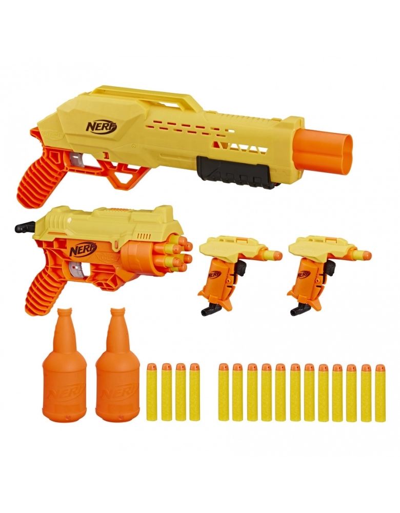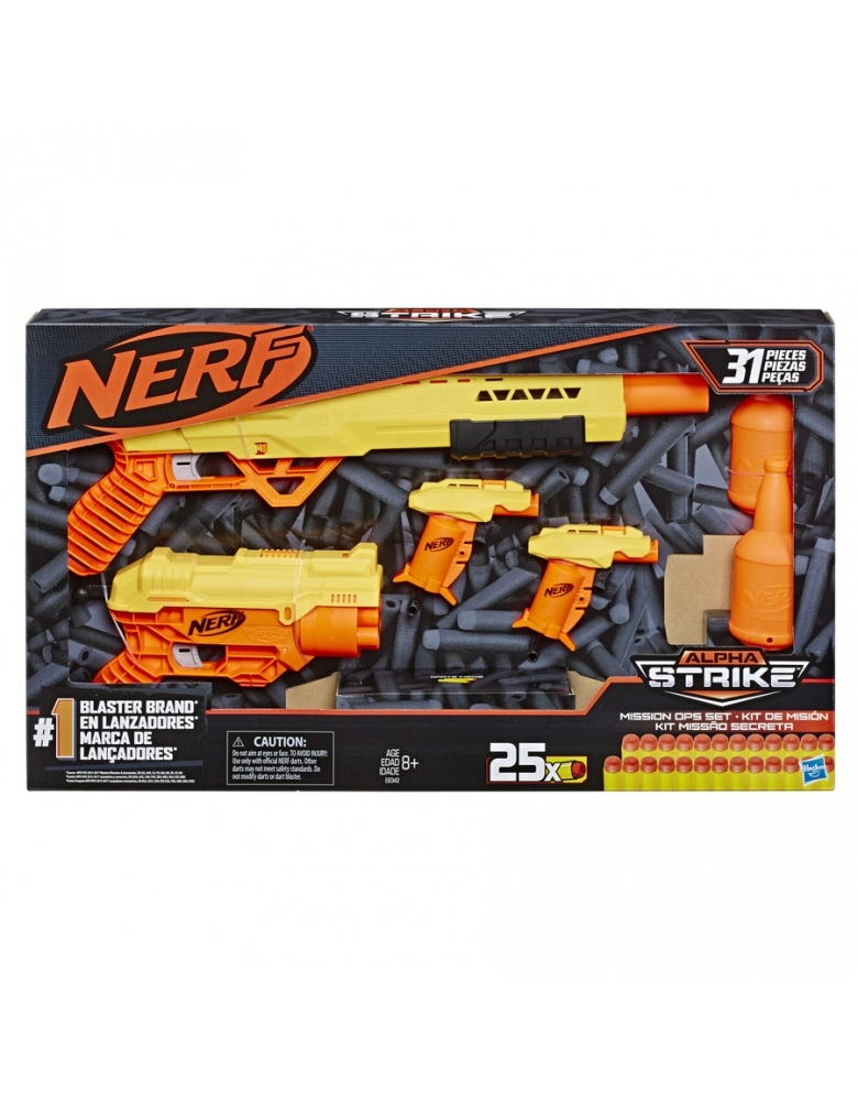 Esse multipack Nerf Alphastrike é super completo e vem com 31 peças no total! Ele inclui 4 lançadores, 25 dardos e alvos para as crianças competirem em campeonatos Nerf! São 2 lançadores Stinger SD-1, 1 lançador Cobra RC-6, 1 lançador Tiger DB-2 e 2 meio-alvos em formato de garrafa que podem se juntar para formar 1 alvo completo! Os lançadores da linha Alphastrike são uma ótima forma de introduzir a brincadeira cheia de desafios Nerf no dia a dia das crianças e experimentar todo o poder e perfor