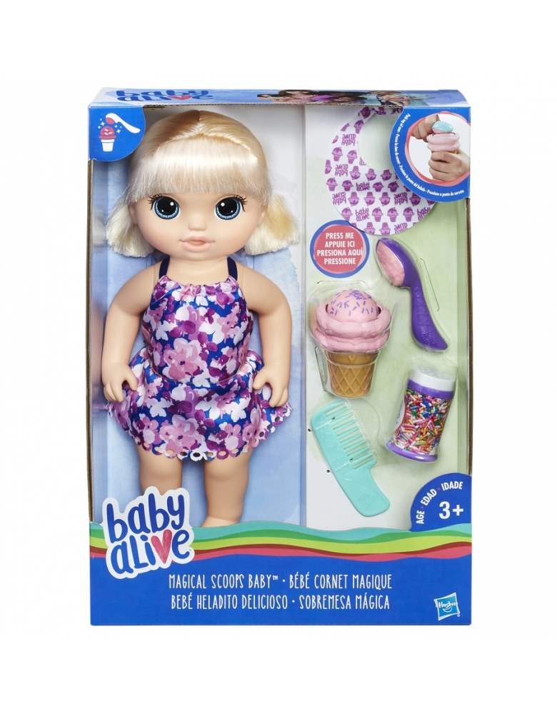 Sua Baby Alive adora um docinho. As crianças podem incrementar o seu sorvete com saborosos granulados, colocar o babador para não sujar a sua linda roupinha e observar ela acabar com toda a sobremesa em um passe de mágica.