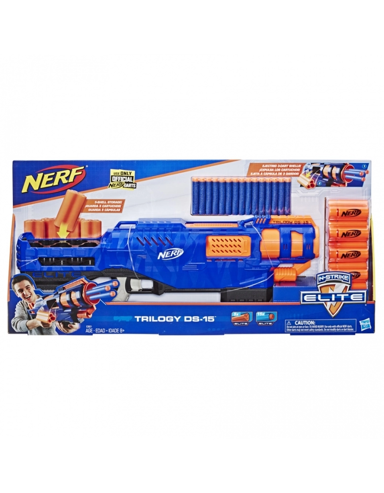 Chegou a mais nova tecnologia para o linha de Elite, as mais esperadas de Nerf. O lançador Trilogy possui uma capsula que lança 3 dardos ao mesmo tempo. Ao recarregar o lançador a capsula é jogada para fora da Nerf para lançamentos ainda mais rápidos.