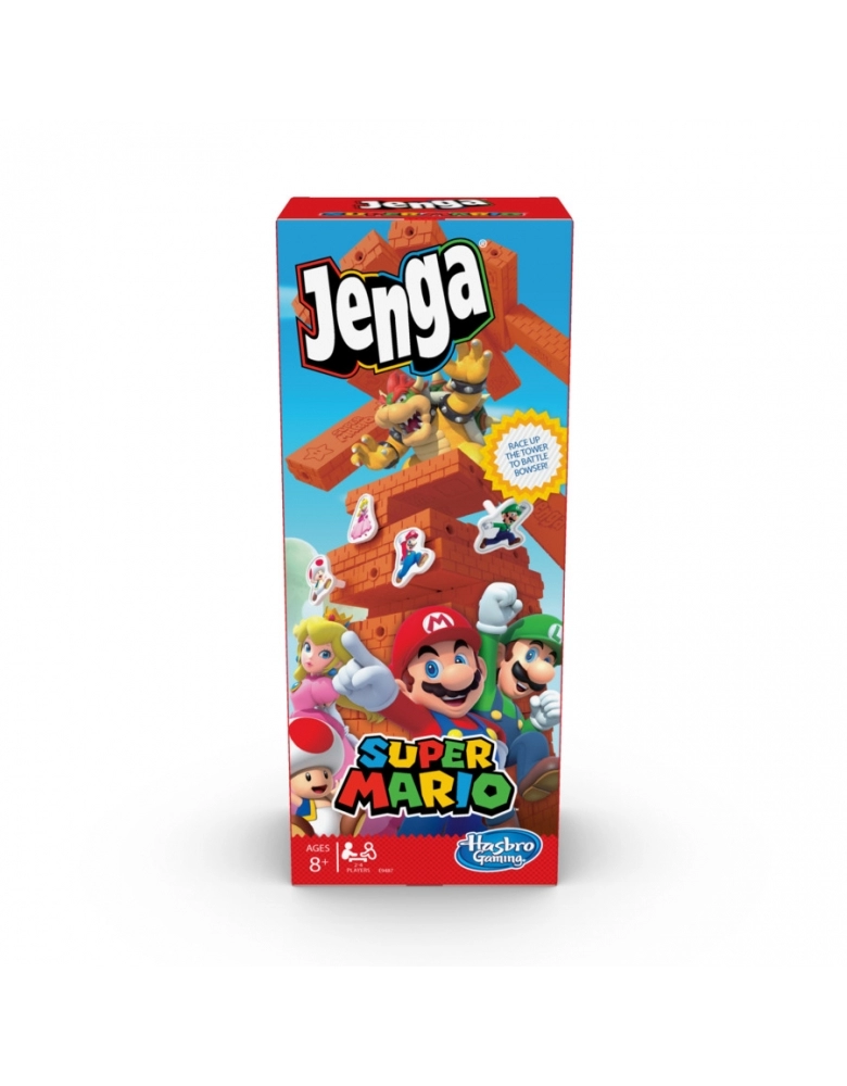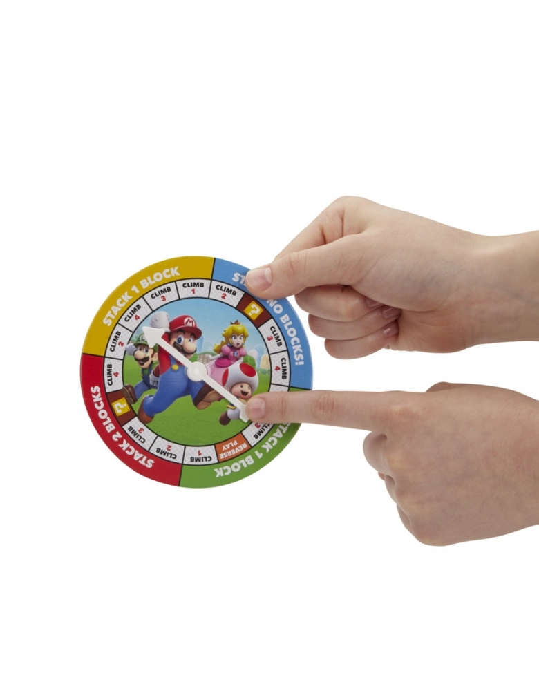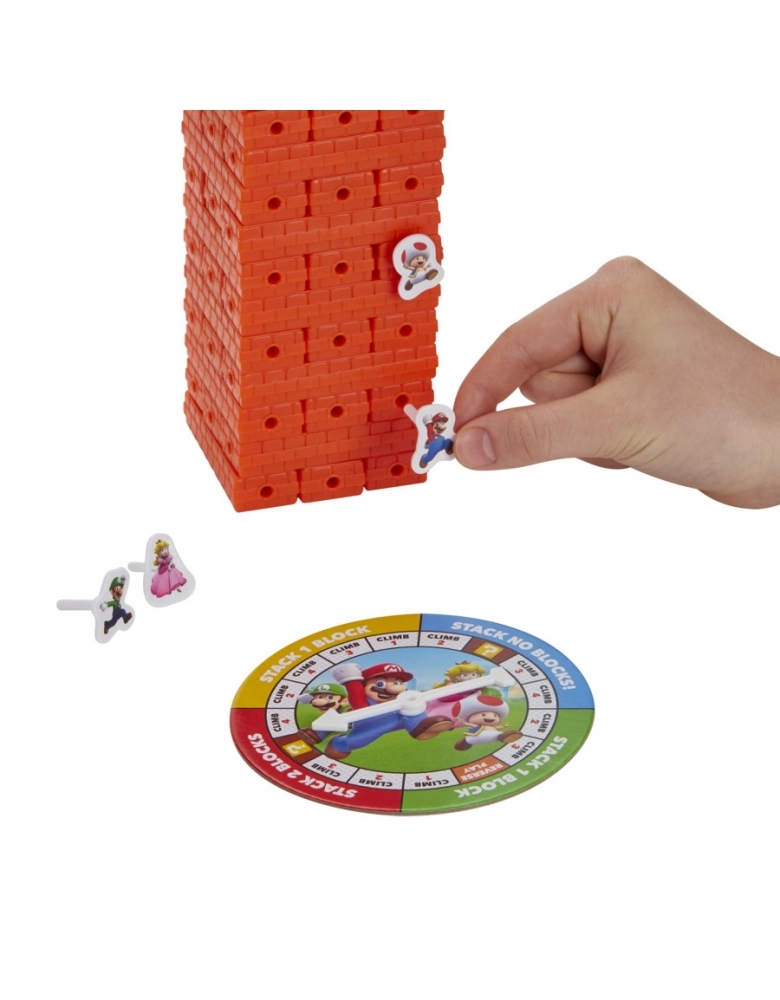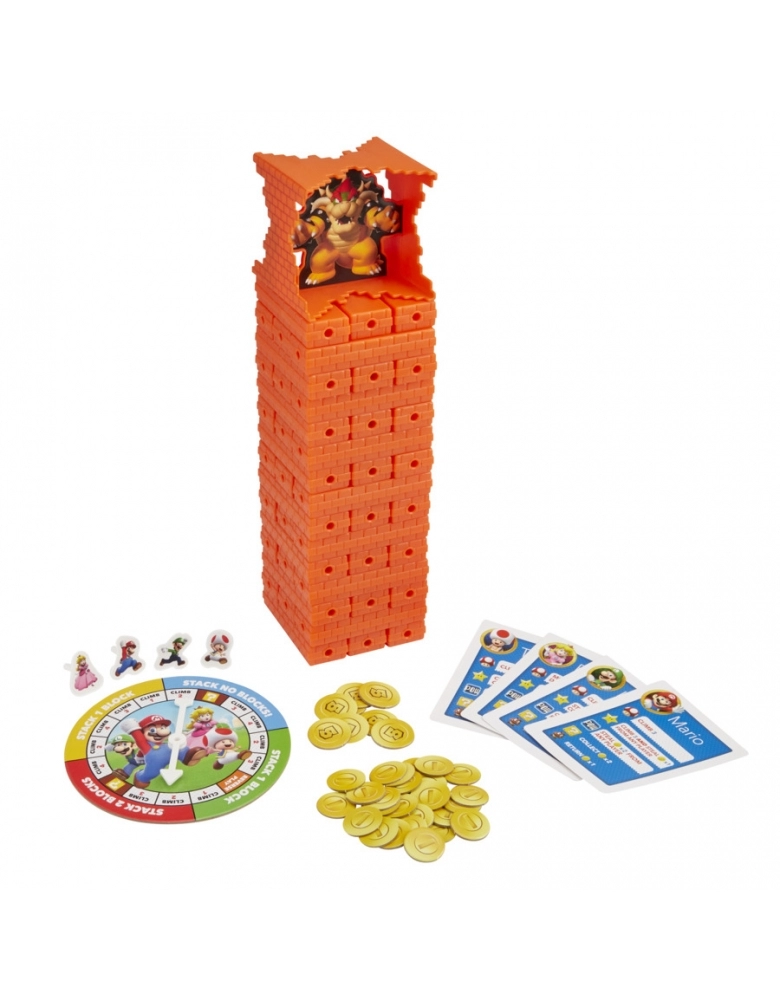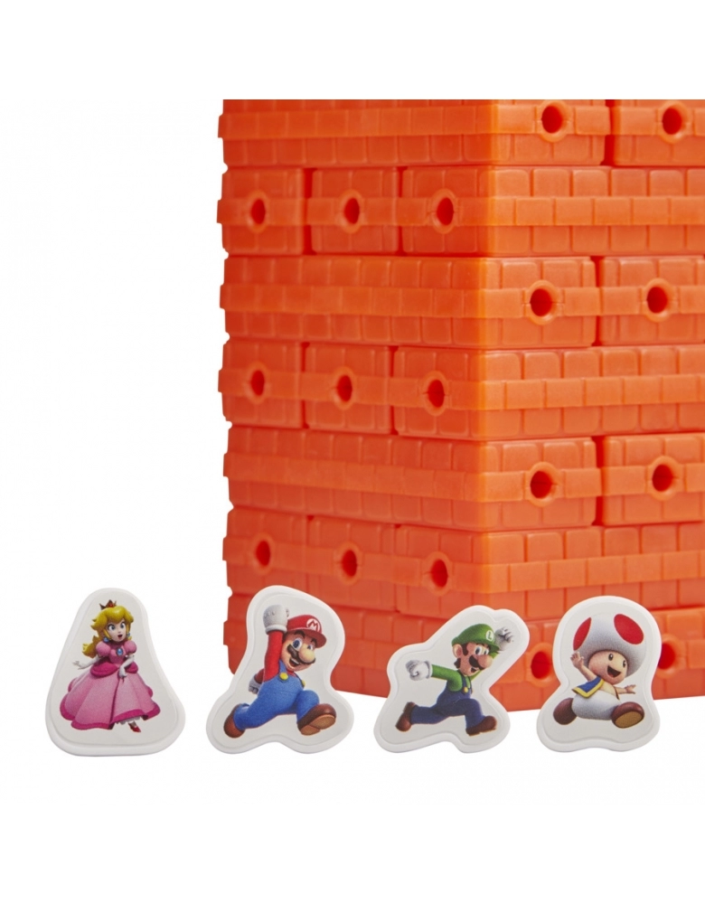 Este é o incrível jogo Jenga com arte, tema e personagens inspirados no famoso videogame Super Mario. Os jogadores devem girar a roleta para determinar a quantidade de blocos para empilhar, quantas camadas os personagens devem subir, inverter a ordem da rodada ou receber moedas. Os jogadores devem mover o seu personagem até o topo da torre, além de tentar baixar os personagens dos outros jogadores, removendo e empilhando os blocos. Mas se a torre cair enquanto fazem isso é o fim do jogo para ele