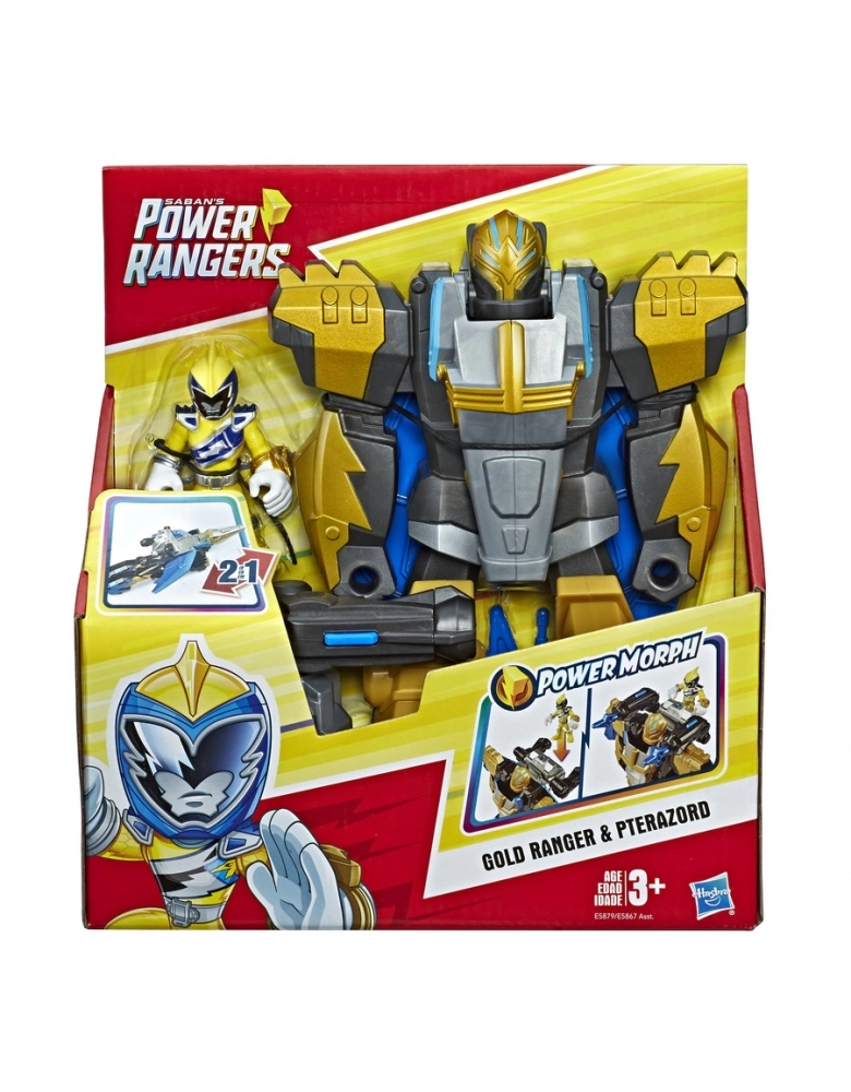 É hora da metamorfose de Power Ranger! Acione o mega poder de Playskool Heroes com esses Zords Morphin de 25 cm! As crianças podem morfar os Zords em animais e vice-versa. O Power Morph System permite que as figuras incluídas ativem os Zords, desbloqueando recursos divertidos, como a abertura da mandíbula e os lançadores de projéteis! Este sortimento vem com Gold Ranger & Pterazord e Blue Ranger & Rhinozord.