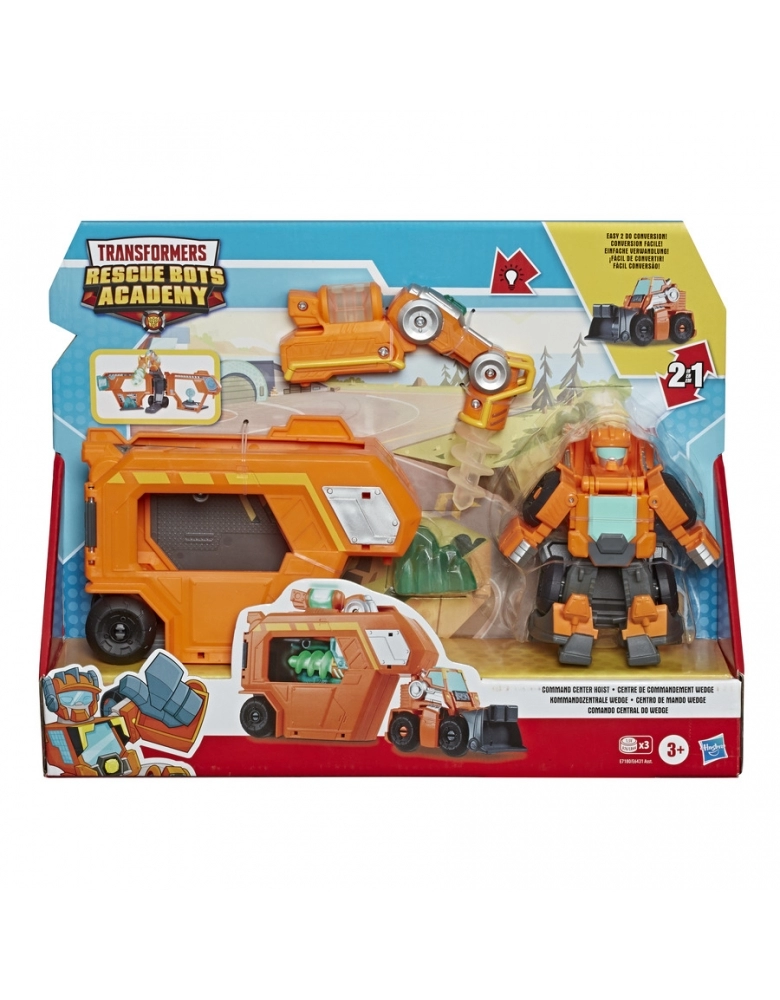 As crianças acima de 3 anos podem se imaginar em grandes aventuras com um dos seus personagens favoritos de Transformers Rescue Bots Academy! Com conversão fácil e tamanho ideal para mãos pequenas, o Centro de Comando com 11 cm se converte do modo robô ao modo veículo em um passo simples! Vem como um trailer que se abre para se tornar no Centro de Comando. As crianças podem encaixar a ferramenta que se ilumina na figura ou no trailer para que as crianças imaginem várias missões de resgate. As cr