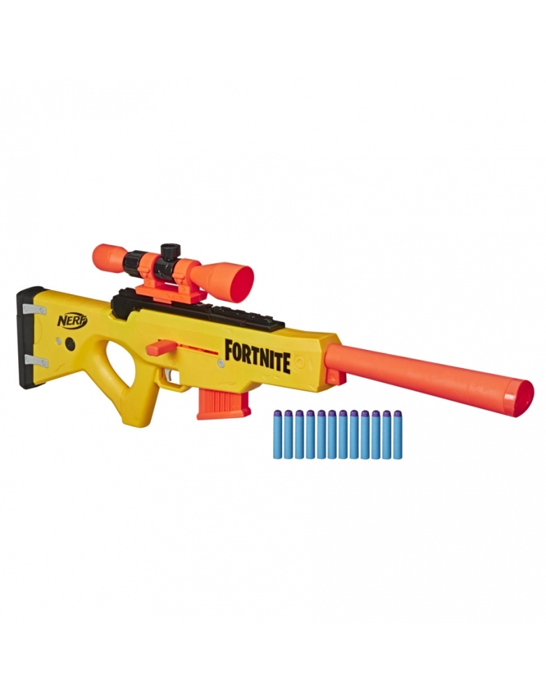 O lançador BASR-L é inspirado pelo lançador utilizado no jogo Fortnite. O lançador possui lançamentos pela alavanca de disparo lateral, inclui um clip com capacidade de 6 dardos e inclui 12 dardos oficiais Nerf. Use a mira removível para ajudar com a pontaria na hora dos lançamentos!