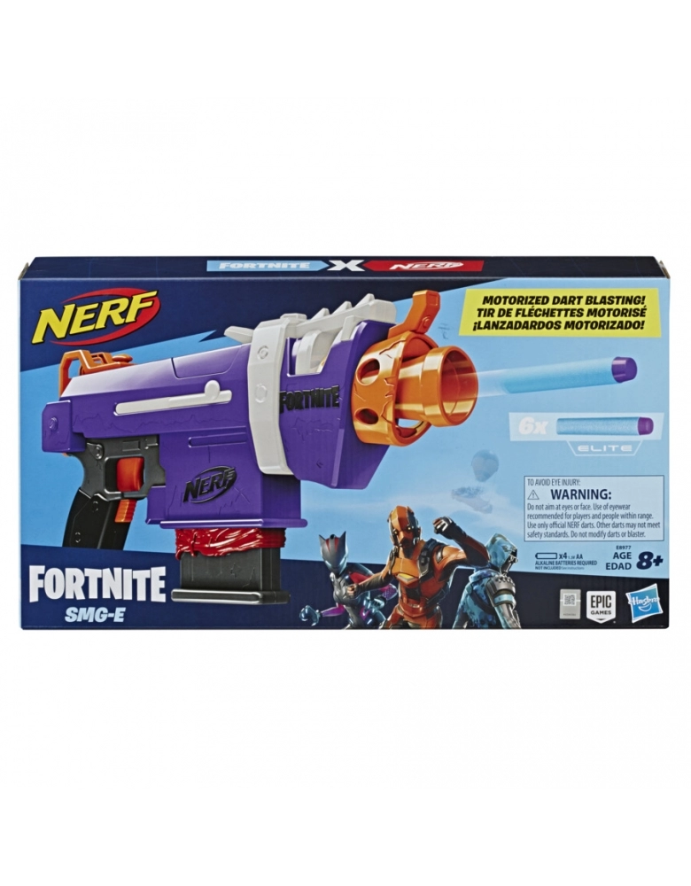 A brincadeira de Fortnite vai ficar ainda mais legal com o lançador motorizado Nerf Fortnite SMG-E! Inspirado no lançador do jogo, a SMG-E captura o visual do jogo, desde sua cor aos seus detalhes e acessórios. Se divirta lançando um dardo por vez de forma rápida e motorizada com o clip de 6 dardos.