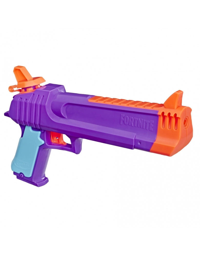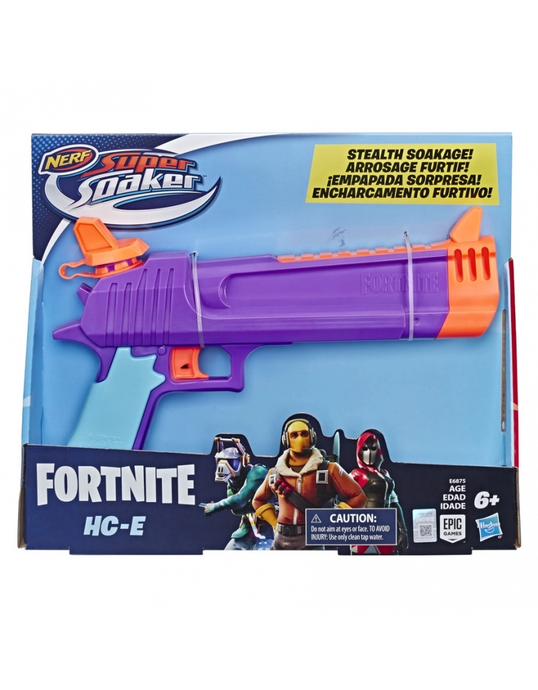 O lançador de água Fortnite HC-E é inspirado no lançador usado em Fortnite! As aventuras Fortnite acontecerão no quintal de casa, enxarcando os amigos! Este lançador de água Nerf Super Soaker comporta até 218 mL de água. É fácil de encher e lançar. Basta abrir a tampa para encher o reservatório e então apertar a alavanca de disparo para lançar um enorme jato d’água. Muita diversão molhando os amigos com o lançador de água Nerf Super Soaker Fortnite HC-E!