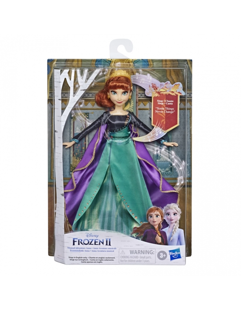 O otimismo e a perseverança de Anna são testados no filme Frozen 2. Ela deve aprender a permanecer forte mesmo quando parece impossível. As crianças podem cantar junto com a boneca a canção "Some Things Never Change" do filme Frozen 2. A boneca vem com pilha para que a brincadeira comece assim que ela sair da caixa. Basta ligar o interruptor nas costas da boneca e apertar o botão no seu corpete para começar a cantar. As crianças vão adorar o vestido com capa inspirado no filme e acessórios, que