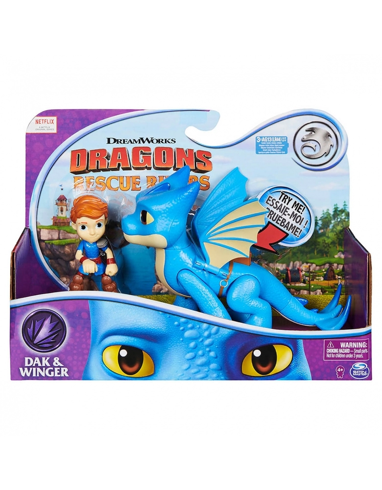 Crie suas próprias aventuras com os conjuntos de figuras de Dragões e Vikings Rescue Riders Cada dragão é articulável e as figuras de seus cavaleiros possui detalhes incríveis e se parecem com seus personagens favoritos da série NETFLIX Cada conjunto ganha vida com emocionantes efeitos sonoros e frases. Para ativar, coloque o seu cavaleiro em cima do dragão ou pressione o botão na sela do dragão.