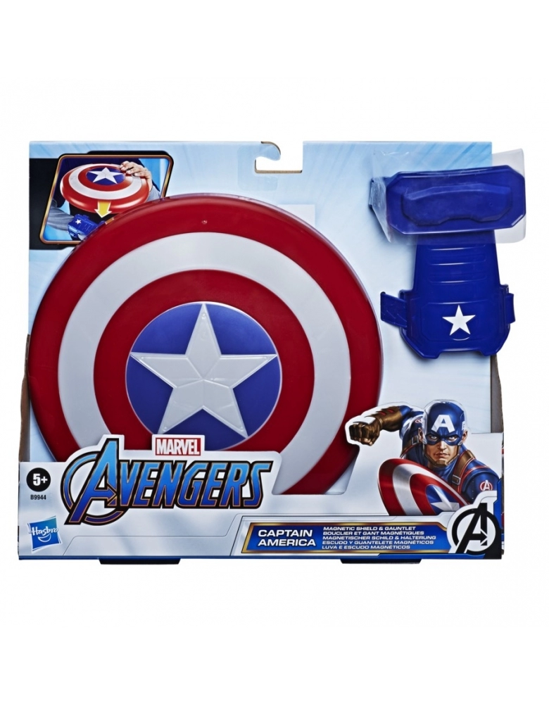 Divirta-se e entre na brincadeira com o escudo e acessório do Capitão América! O escudo é fixado no acessório de pulso através de um imã, tornando a brincadeira muito parecida com o filme!