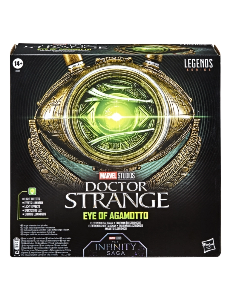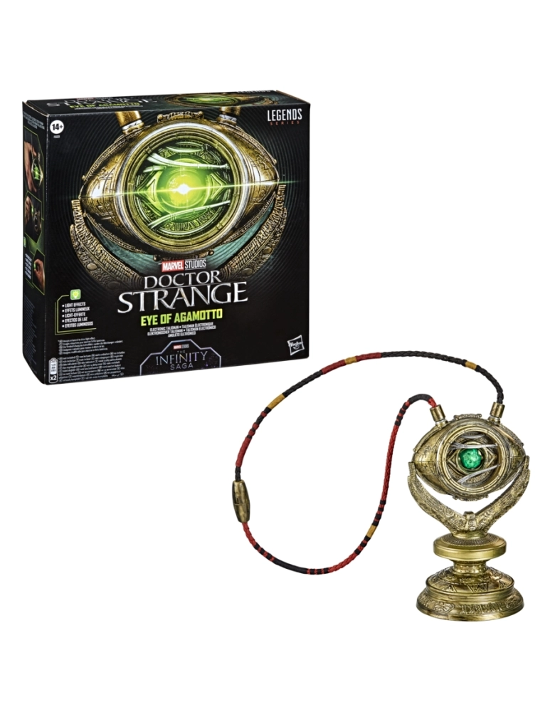 O talismã premium olho de Agamoto que se ilumina é inspirado no objeto místico que aparece com o Doutor Estranho nas revistas e filmes da Marvel. Altamente detalhado, o Olho de Agamoto premium é uma réplica fiel do objeto místico que o Doutor Estranho recebeu do mago supremo. Talismã premium especial para dar um toque de alta qualidade a qualquer fantasia ou cosplay Marvel. Com mais de 80 anos de história em quadrinhos, a Marvel tornou-se referência para fãs e colecionadores em todo o mundo. Com a série Marvel Legends, os personagens favoritos dos fãs do universo dos quadrinhos Marvel e do universo cinematográfico Marvel são criados com detalhes de alta qualidade para serem exibidos como incríveis peças. Itens adicionais vendidas separadamente. Sujeitas à disponibilidade.