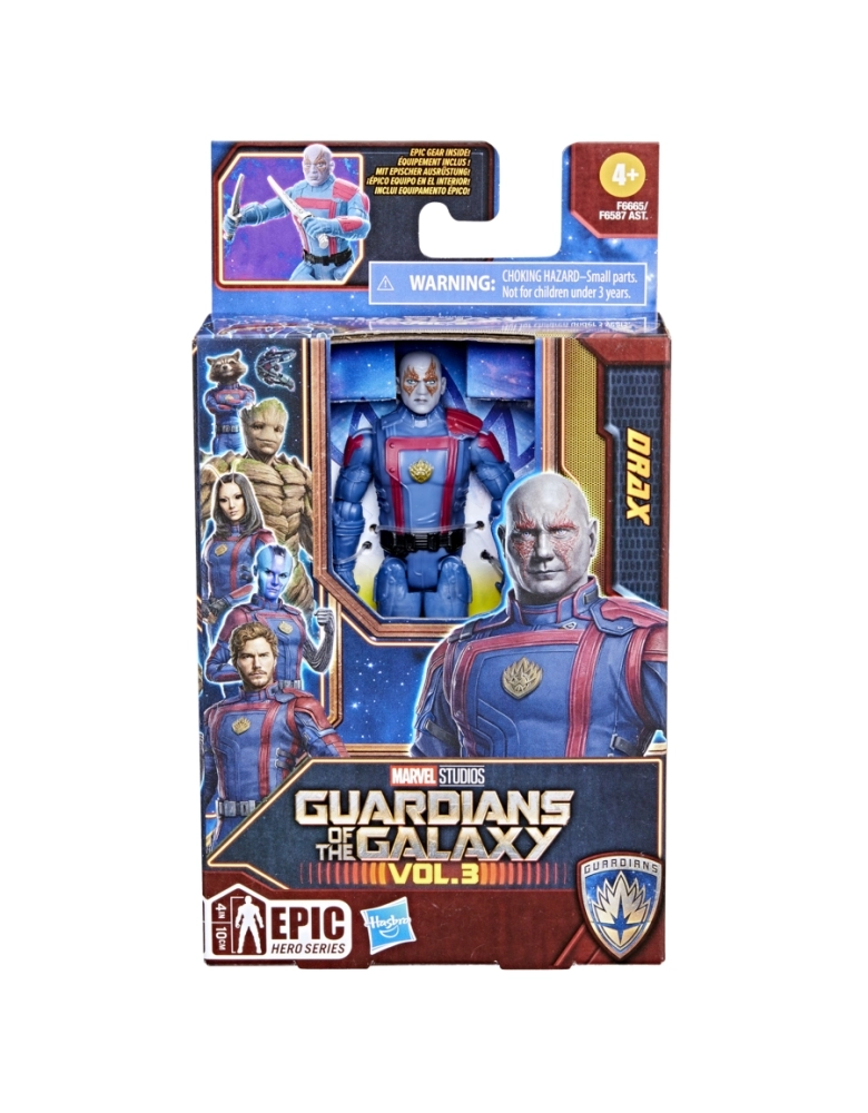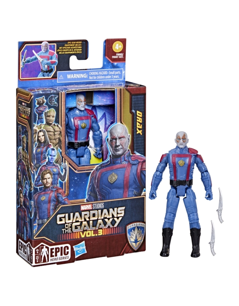 Criar as batalhas galácticas e aventuras espaciais mais épicas com as figuras da série Guardians of the Galaxy Epic Hero. Com uma figura e 2 acessórios de armas incluídos, as crianças podem fingir que estão ao lado dos Guardiões e salvar a galáxia! Essas figuras de 10 cm apresentam 9 pontos de articulação e design inspirado em filmes, para que as crianças possam criar suas próprias aventuras com os Guardiões. Prepare-se para aventuras espaciais repletas de ação com os Guardiões da Galáxia, inspirados no Universo Marvel. Copyright 2023 MARVEL. Hasbro e todos os termos relacionados são marcas comerciais da Hasbro.
