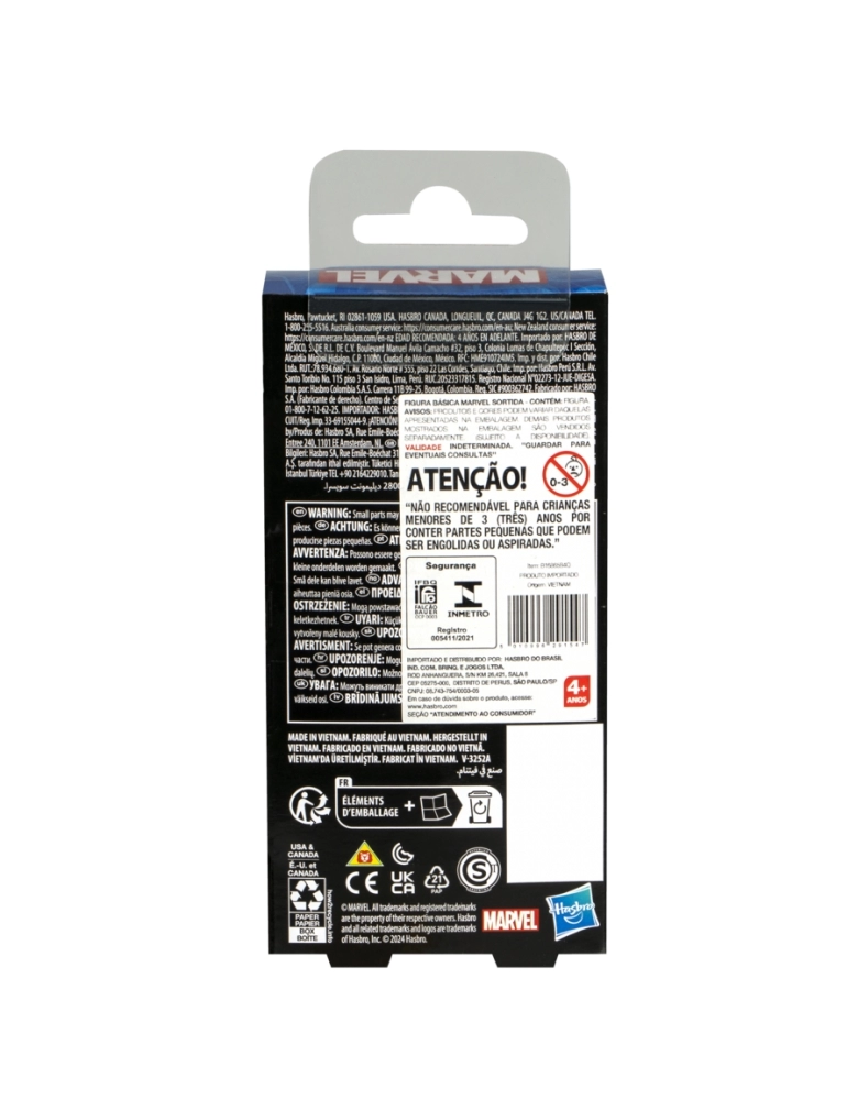 Com figuras básicas Marvel de 15 cm, meninos e meninas podem se imaginar criando a sua própria equipe de super-heróis. As crianças podem brincar com personagens como Hulk, Homem-Aranha, Capitão América, Homem de Ferro, Thor, Pantera Negra e Thanos. Cada figura Marvel possui múltiplos pontos de articulação para as crianças criarem poses durante a brincadeira ou exibirem na estante. Cada figura é inspirada no Universo Marvel e apresenta design e acabamento clássicos. Cada figura de brinquedo de 15 cm vem em embalagem com visor transparente e com a marca Marvel, incrível para exibição nos quartos de meninos e meninas. Outros brinquedos Marvel disponíveis para muitas aventuras com super-heróis! (Vendidos separadamente. Sujeitos à disponibilidade.) Copyright MARVEL. Todas as marcas comerciais e marcas registradas são propriedade de seus respectivos proprietários. Hasbro and all related trademarks and logos are trademarks of Hasbro, Inc.