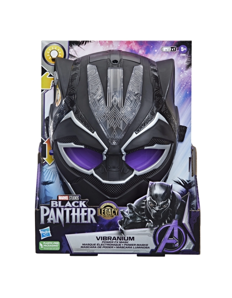 Com ajuda de tecnologia alimentada por vibranium , Black Panther protege o reino de Wakanda!; Herói. Lenda. Rei. Os fãs agora podem se divertir com o Pantera Negra, que faz parte do Cineverso da Marvel, com as figuras da Marvel Studios Legacy Collection. Fãs a partir dos 5 anos podem imaginar as maiores batalhas Marvel com brinquedos do Pantera Negra, com design, detalhes e acessórios incríveis. Outras brinquedos Marvel Studios Legacy Collection Black Panther disponíveis para imaginar a ação e a aventura de Pantera Negra! (vendidos separadamente, sujeitos à disponibilidade.) As crianças podem se imaginar como o Pantera Negra com a Máscara Luminosa de Vibranium, com efeitos luminosos pulsantes ou constantes e incrível design inspirado no filme. Basta apertar o botão na frente da máscara para ativar luzes pulsantes, e pressionar novamente para as luzes ficarem acesas constantemente. WAKANDA PARA SEMPRE!