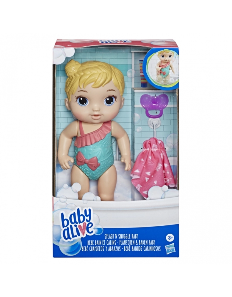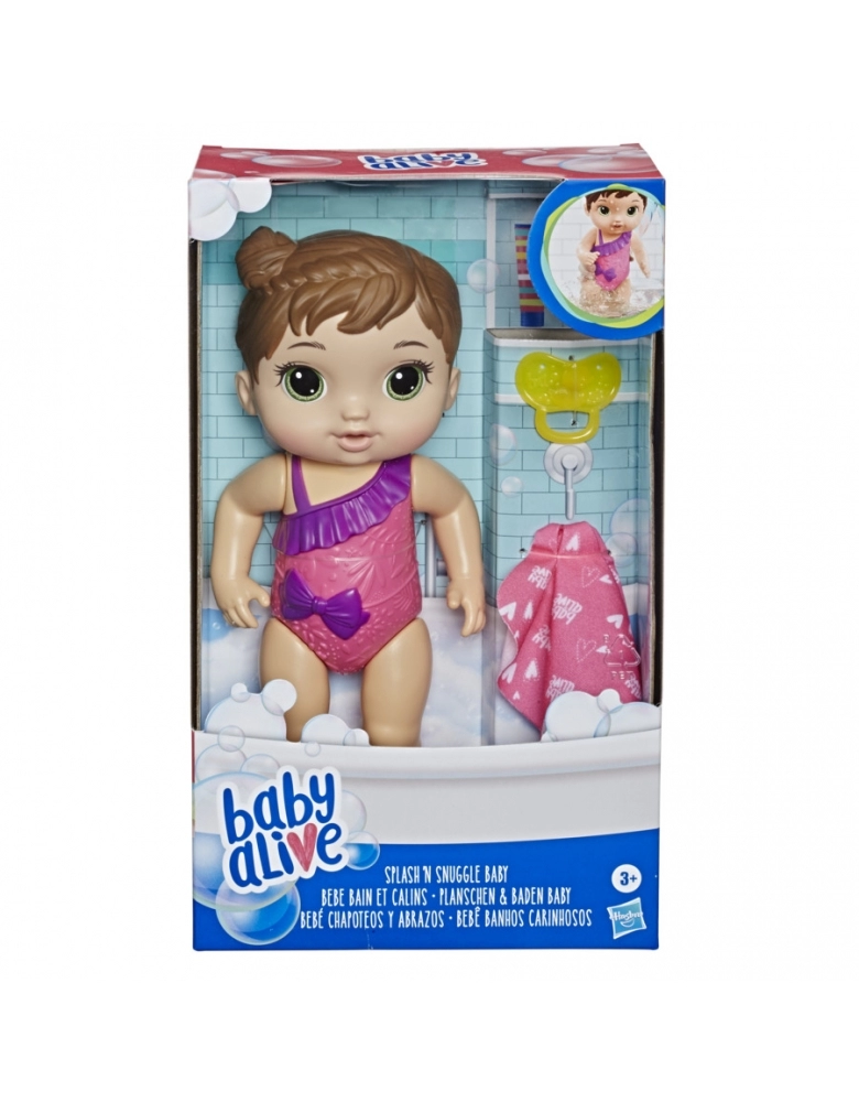 A Baby Alive Bebe Banhos Carinhosos vem pronta para entrar no banho! Esse bebe pode entrar debaixo da agua e tomar banho todo dia. A boneca vem com uma chupeta e uma toalha.