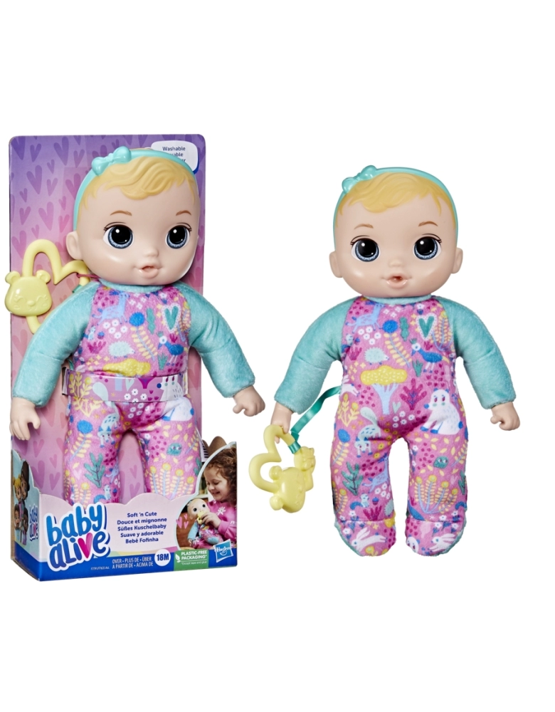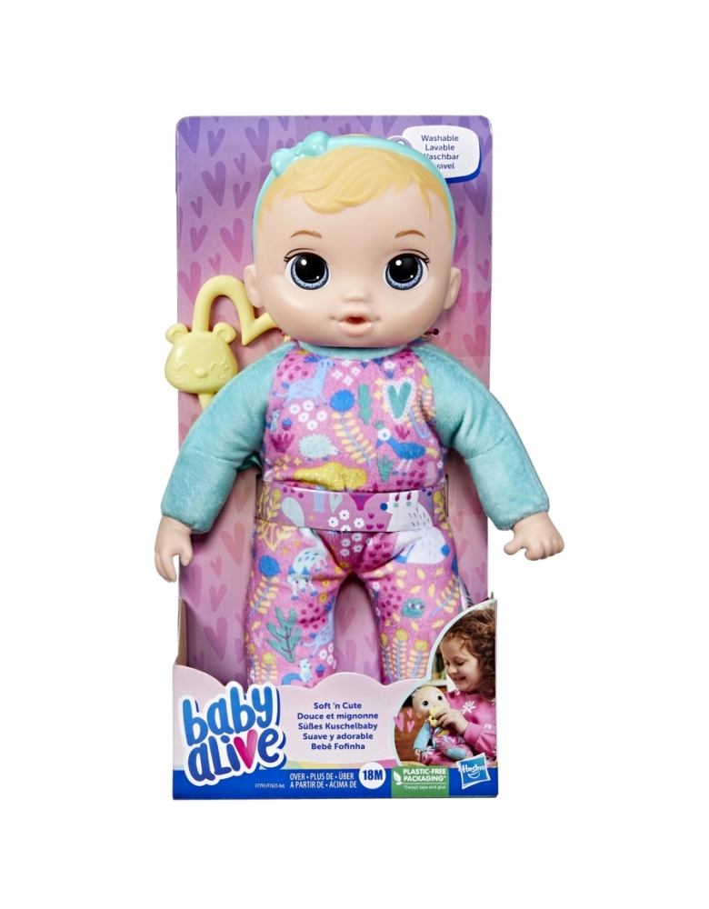 Excelente para dormir abraçada, a boneca Baby Alive Bebê Fofinha é uma boneca macia feita especialmente para crianças a partir dos 18 meses. As crianças podem dar o mordedor de mentirinha para a sua bebê. O mordedor tem formato de ursinho. Esta boneca macia de 28 cm vem com roupa inspirada em animais e uma tiara com laço. Ele pode colocar o dedo na boca. As crianças vão adorar dormir abraçadinhas com esta boneca. Depois de tanto abraço, é super fácil de lavar. Numa linda embalagem de bercinho, esta boneca é um excelente presentes para chás de bebês, aniversários e outras celebrações. Baby Alive and all related properties are trademarks of Hasbro.