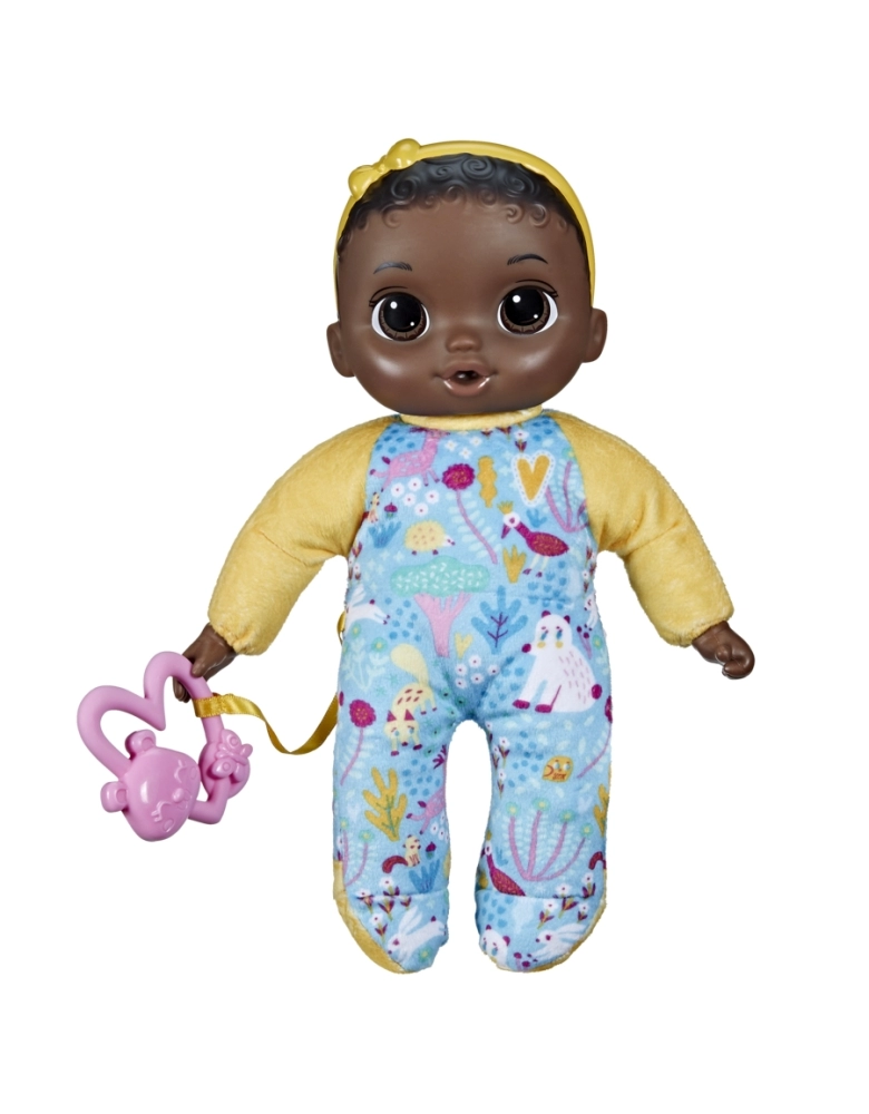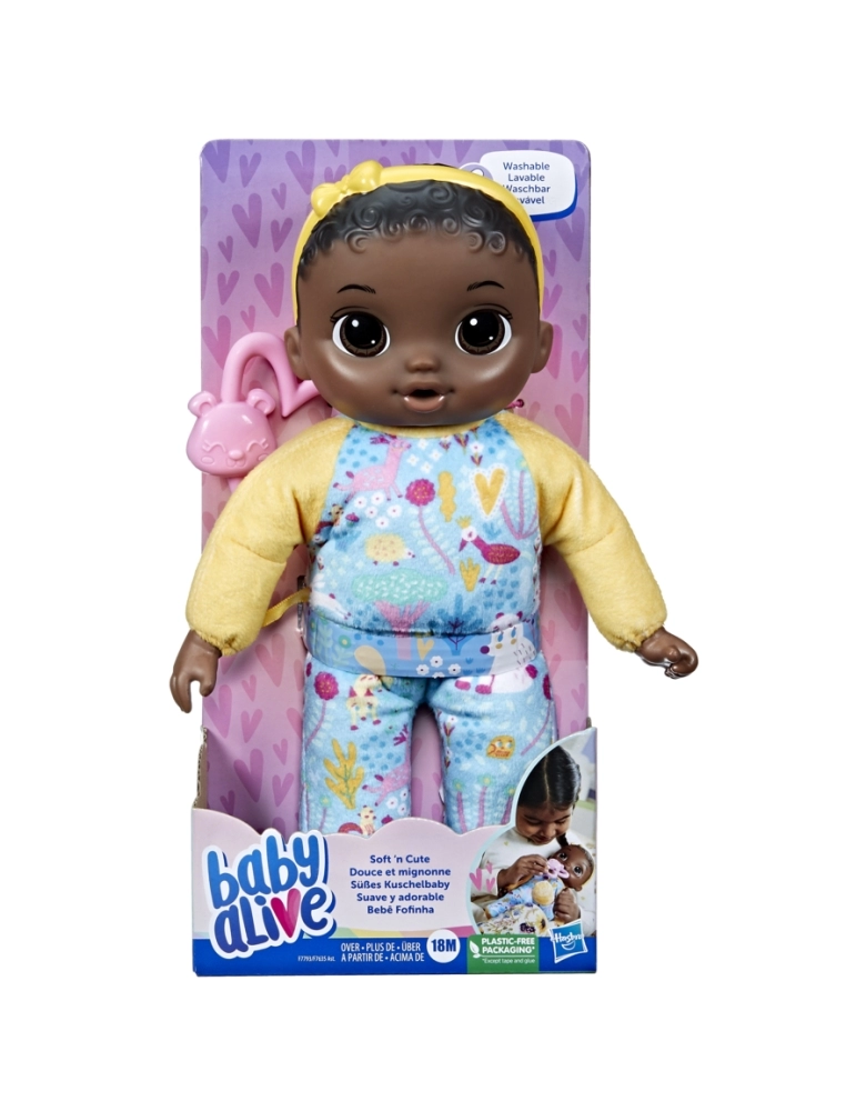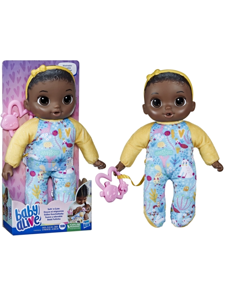Excelente para dormir abraçada, a boneca Baby Alive Bebê Fofinha é uma boneca macia feita especialmente para crianças a partir dos 18 meses. As crianças podem dar o mordedor de mentirinha para a sua bebê. O mordedor tem formato de ursinho. Esta boneca macia de 28 cm vem com roupa inspirada em animais e uma tiara com laço. Ele pode colocar o dedo na boca. As crianças vão adorar dormir abraçadinhas com esta boneca. Depois de tanto abraço, é super fácil de lavar. Numa linda embalagem de bercinho, esta boneca é um excelente presentes para chás de bebês, aniversários e outras celebrações. Baby Alive and all related properties are trademarks of Hasbro.