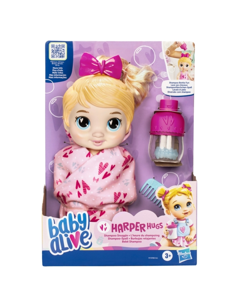 As crianças irão se divertir na hora do banho com sua nova amiga Baby Alive Bebê Shampoo! As crianças podem inclinar o frasco para ver as bolhas de mentirinha subirem e descerem! Pode ser usado vazio, com água ou shampoo infantil. As crianças podem brincar de criar penteados com o pente e laço removível. Enrolar a boneca na toalha macia com fechos para encaixar. As bonecas Baby Alive são um excelente presente para meninos e meninas a partir dos 3 anos.