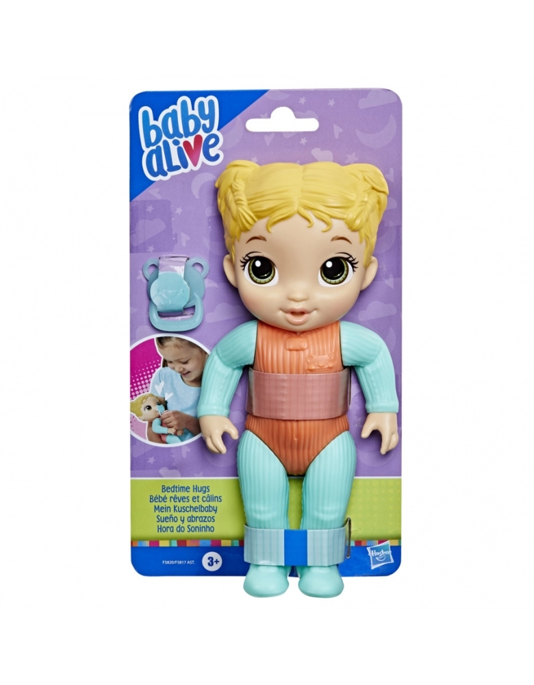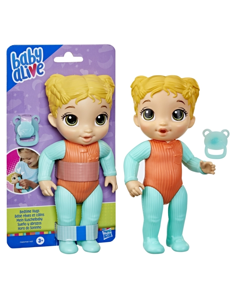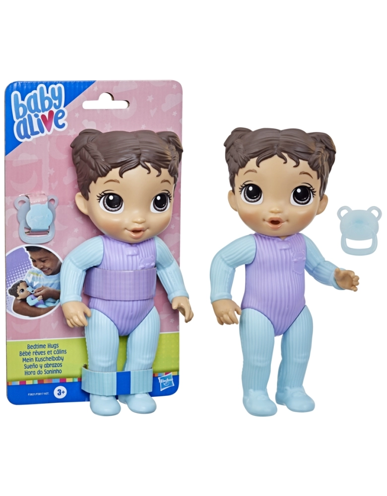 É muito divertido brincar de colocar a boneca Baby Alive Hora do Soninho para dormir. Ela vem com um lindo pijama moldado em seu corpo e chupeta de brinquedo para as crianças poderem brincar que estão fazendo o bebê dormir. Com 5 pontos de articulação, esta boneca pode posar de várias maneiras divertidas, é fácil de limpar e é ideal para brincar em qualquer lugar. PRESENTE: Esta linda boneca de plástico é fácil de limpar. É um ótimo presente para meninos e meninas. Baby Alive e todas as propriedades relacionadas são marcas registradas da