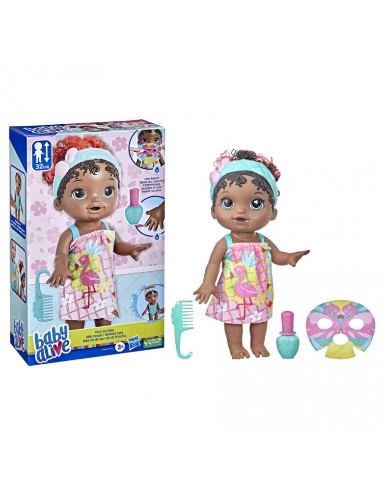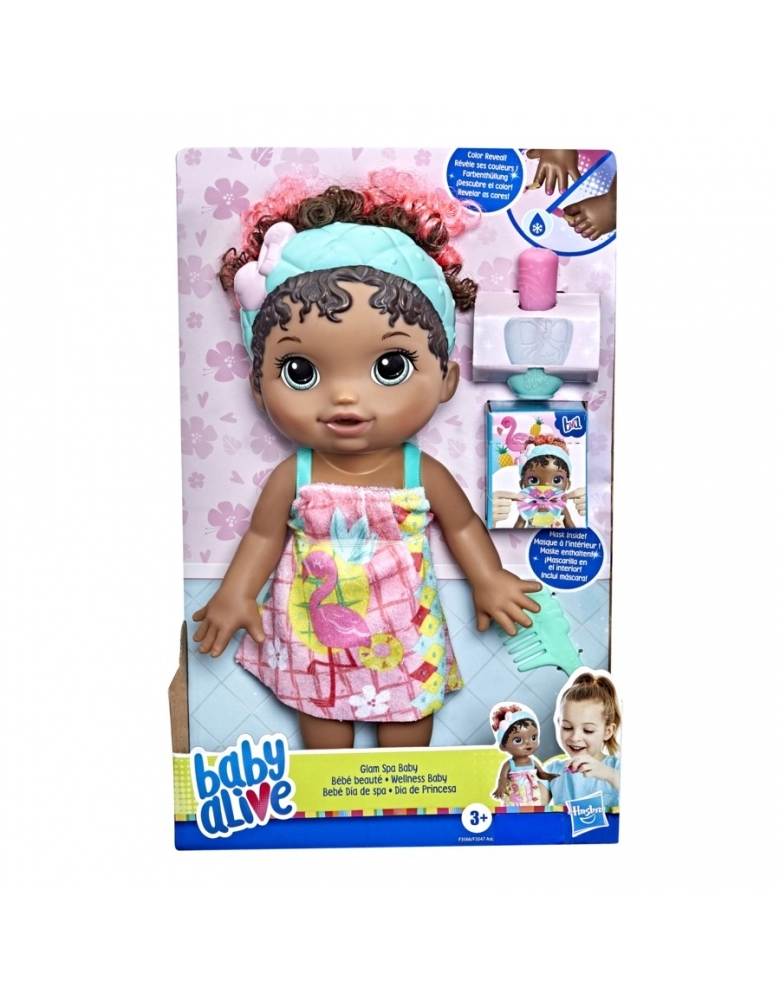 É muito divertido cuidar da bebê com acessórios de beleza! As crianças irão se divertir revelando a cor do esmalte das mãos e pés da boneca Baby Alive Dia de Princesa. A máscara revela a maquiagem dos olhos no rosto da boneca. Meninas e meninos a partir dos 3 anos podem brincar de pintar as unhas da boneca com o pincel e revelar uma divertida cor em suas mãos e pés. É só encher o potinho de esmalte de mentirinha com água gelada! A boneca vem com acessórios de beleza como toalha, máscara de boneca, pote de esmalte de mentirinha e um pente. Vem embalada em embalagem reciclável de papel que não contém plástico, exceto pela fita adesiva e cola. A boneca Baby Alive Dia de Princesa é um excelente presente de aniversário, Natal ou outras celebrações.
