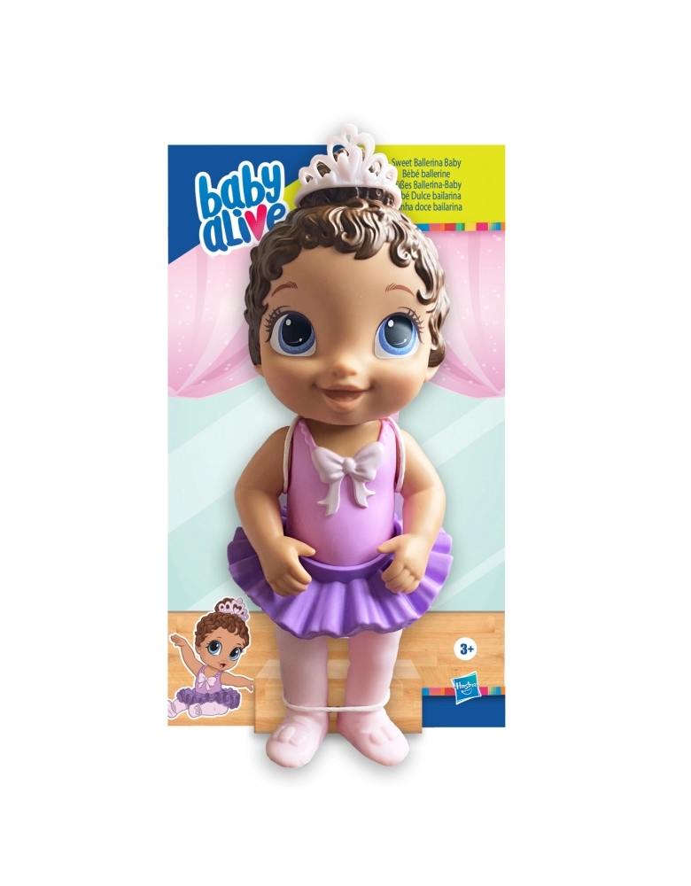 Esta linda dançarina está pronta para a aula de balé. As crianças podem imaginar lindos passos de dança com esta boneca bebê Baby Alive Minha doce bailarina; TRAJE ROSA MOLDADO: Esta boneca de 26,5 cm vem com um traje rosa moldado como uma bailarina. A boneca bebê Minha doce bailarina vem pronta para uma aula de dança; SAIA TUTU E TIARA REMOVÍVEIS: As crianças a partir dos 3 anos podem vestir a boneca com acessórios de balé como saia de bailarina e tiara. A boneca bebê Baby Alive Minha doce bailarina é um presente adorável para crianças que gostam de dançar. Excelente para aniversário e outras celebrações;