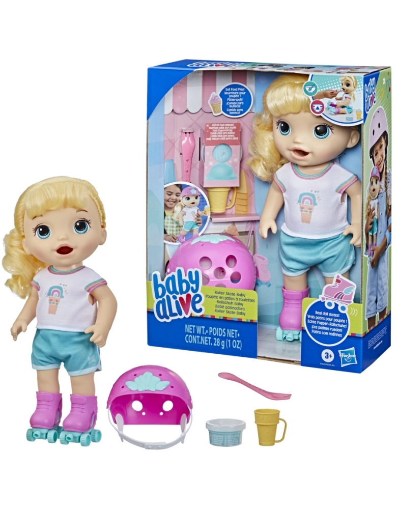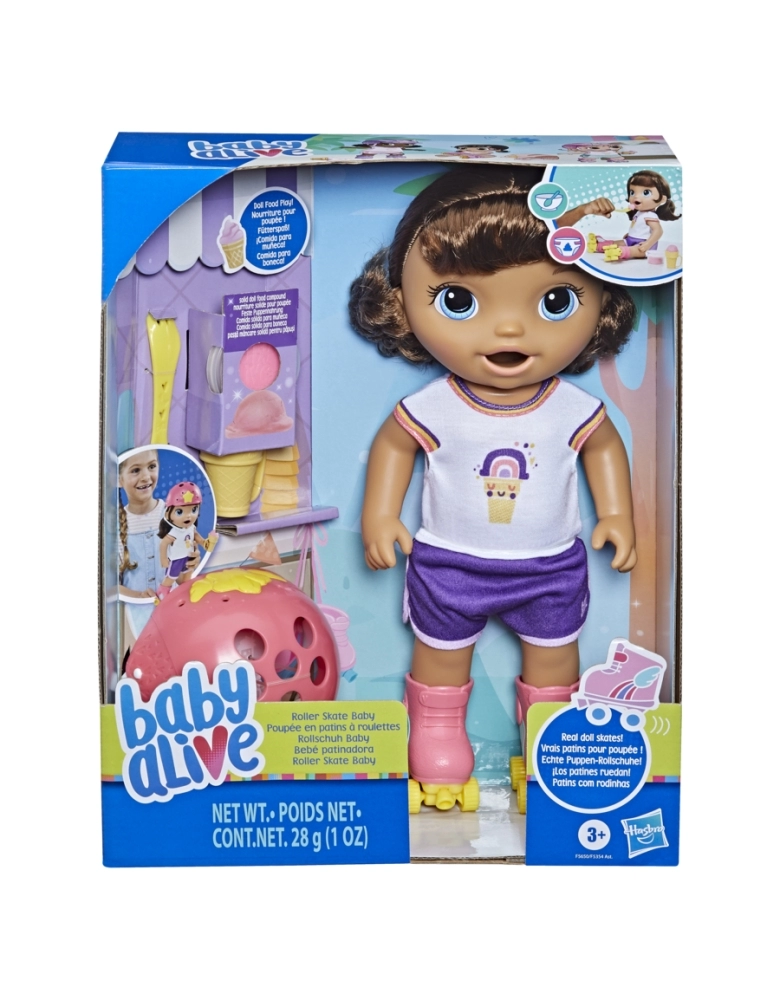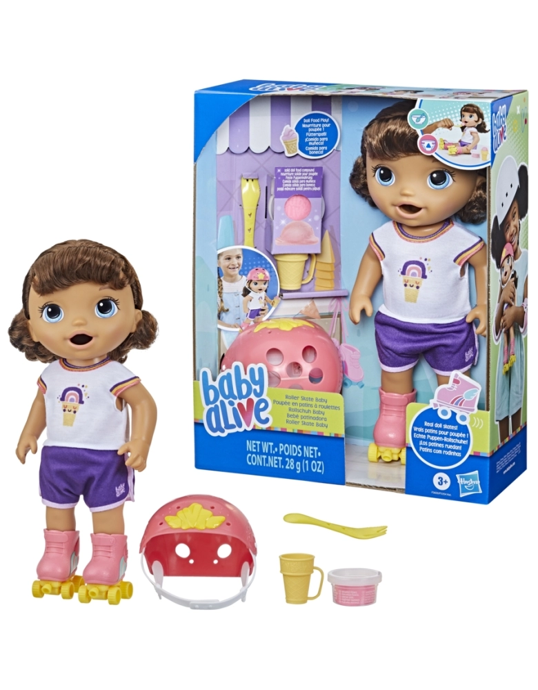 Baby Alive Patinadora vem pronta para a diversão com estilo superlegal de patinação! Apresentando patins de boneca de verdade, as crianças vão se divertir com este bebê. Esta boneca Baby Alive para crianças a partir dos 3 anos inclui acessórios de boneca adoráveis, como patins, capacete, colher, casquinha de plástico e 1 pote de comida de boneca sólida. Tanto os pais quanto as crianças vão adorar esta boneca que come e faz “caquinha” apresenta uma fralda de “troca com um clique” para facilitar a troca de fraldas e brincar quantas vezes quiser. Esta boneca de 30 cmcom patins também apresenta um de macacão colorido e elegante. Esta boneca é um brinquedo incrível para meninas e meninos e é um ótimo presente para aniversários e outras ocasiões.