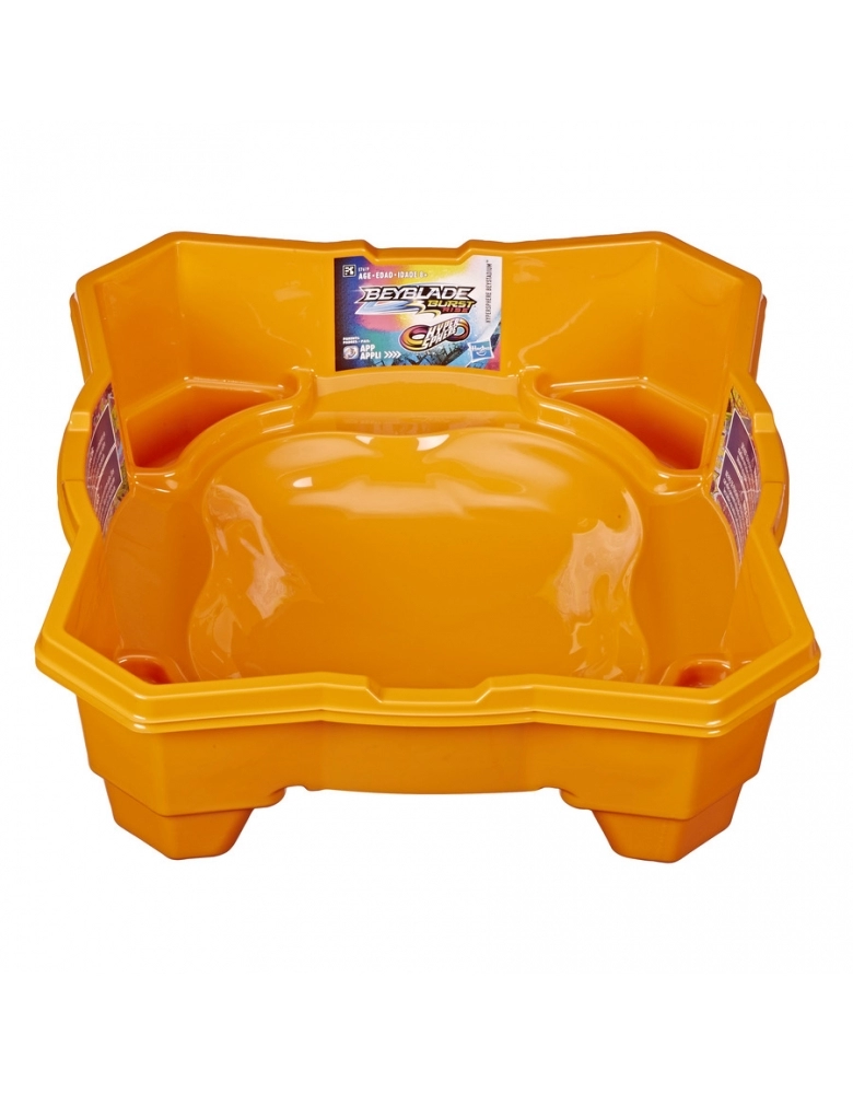A arena Beystadium é projetada especialmente para os piões subirem suas paredes e batalharem na passarela (piões vendidos separadamente, sujeitos à disponibilidade)
