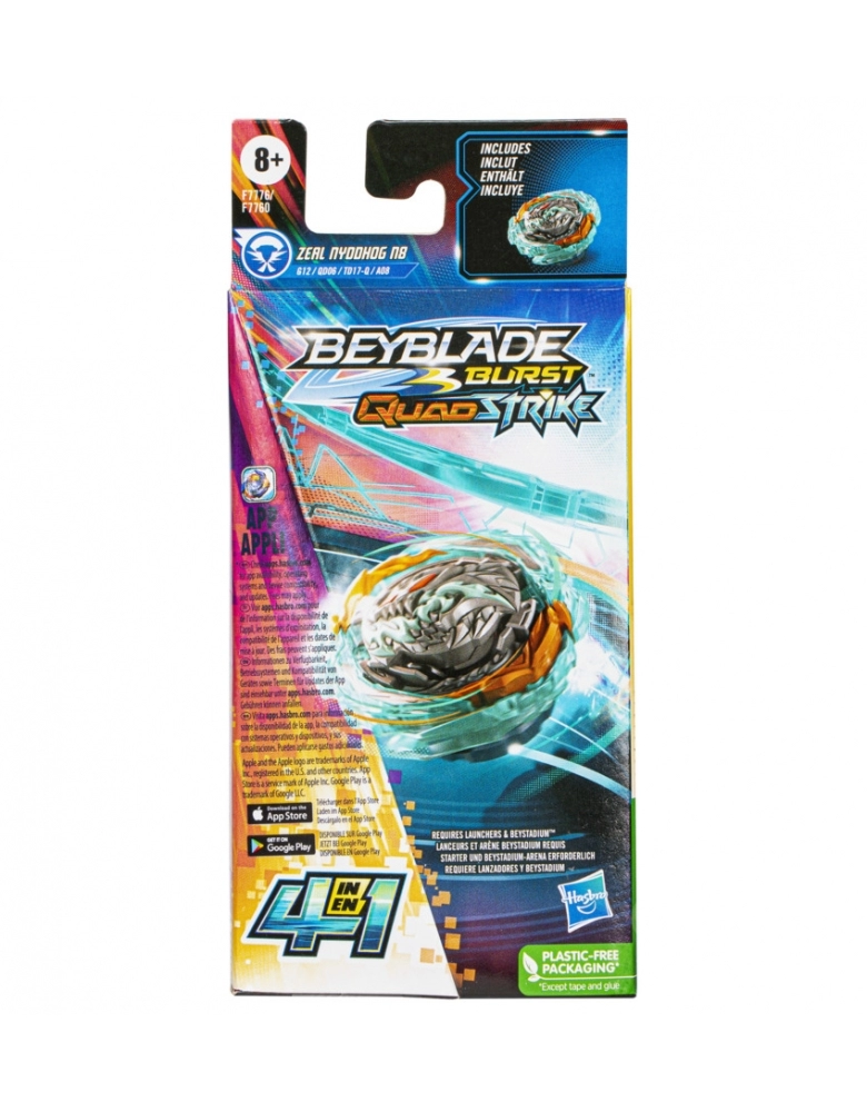 Customizar o pião nos modos Core e Apex para o tipo defesa ou modos Core+ e Apex+ para o tipo ataque. Os jogadores devem buscar a melhor maneira de configurar o pião para a batalha na arena Beystadium QuadStrike (arena e lançador vendidos separadamente, sujeitos à disponibilidade). Basta escanear o código na arena Beystadium QuadStrike para desbloquear o pião no aplicativo Beyblade Burst. Hasbro and all related terms are trademarks of Hasbro, Inc.