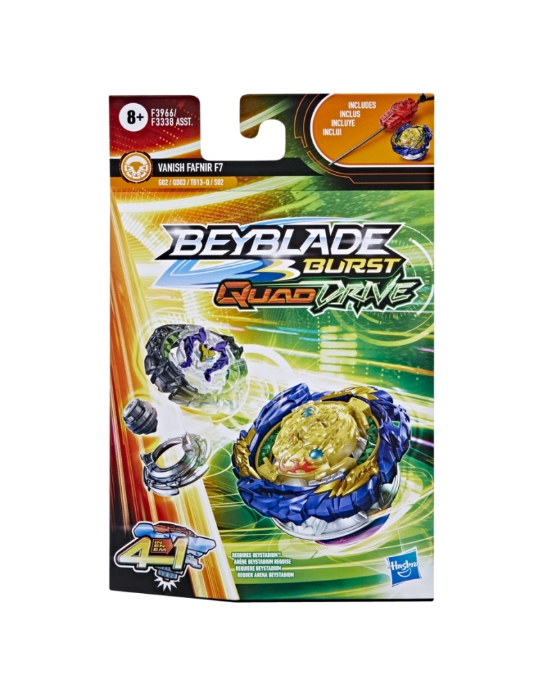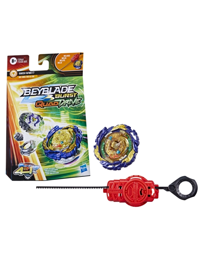 Os piões QuadDrive podem ser configurados de 4 maneiras e podem ser personalizados como nunca antes para ganhar maiores vantagens na batalha. São 4 estratégias, 4 modos de batalhas, 4 maneiras de vencer. É hora de treinar para se tornar o campeão da arena com o lançador e o pião Beyblade Burst QuadDrive. O jogador personaliza o pião para os modos Core e Apex ou para os modos Core + e Apex +, e tenta ativar o poder da tecnologia avançada QuadDrive na arena QuadDrive Beystadium (a arena Beystadium é vendida separadamente). Escanear o código nos piões QuadDrive para liberar o pião em uma batalha virtual no aplicativo Beyblade Burst! Batalhas radicais com as arenas Beyblade Burst Beystadium, lançadores e piões numa grande jornada Beyblade.