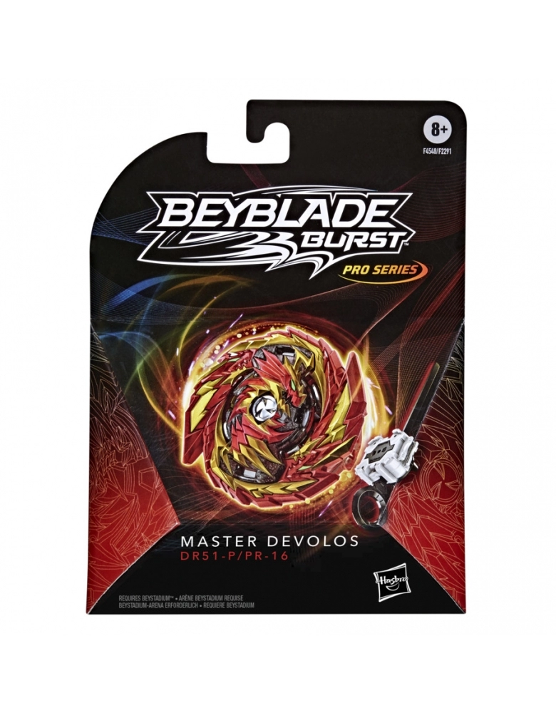 Competições de elite usando o autêntico sistema de batalha Beyblade Burst Pro Series de inspiração japonesa! Beyblade Burst Pro Series piões, lançadores e Evo Elite Champions Beystadium oferecem componentes autênticos e recursos de desempenho de batalha. Este kit inicial inclui 1 lançador de giro à direita Beyblade Burst Pro Series, folha de adesivos e 1 pião de batalha competitivo de giro à esquerda / direita: Master Devolos DR51-P PR-16 (lançador de giro à esquerda vendido separadamente, sujeito a disponibilidade). O pião inclui peças de metal fundido para um peso pesado. O pião tipo equilíbrio Master Devolos apresenta camada de energia reversível, direção de giro ajustável e 3 modos de pontas de desempenho. Pião compatível com o sistema Beyblade Burst Pro Series.
