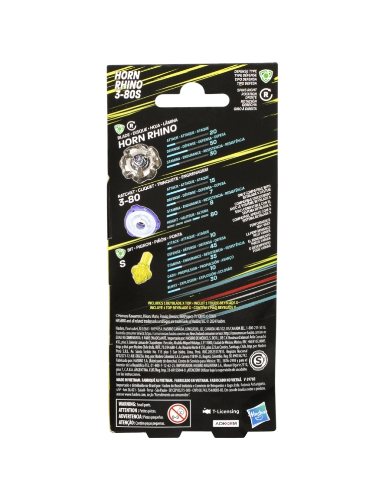 BEYBLADE X PIÃO HORN RHINO 3-80S BOOSTER G0192