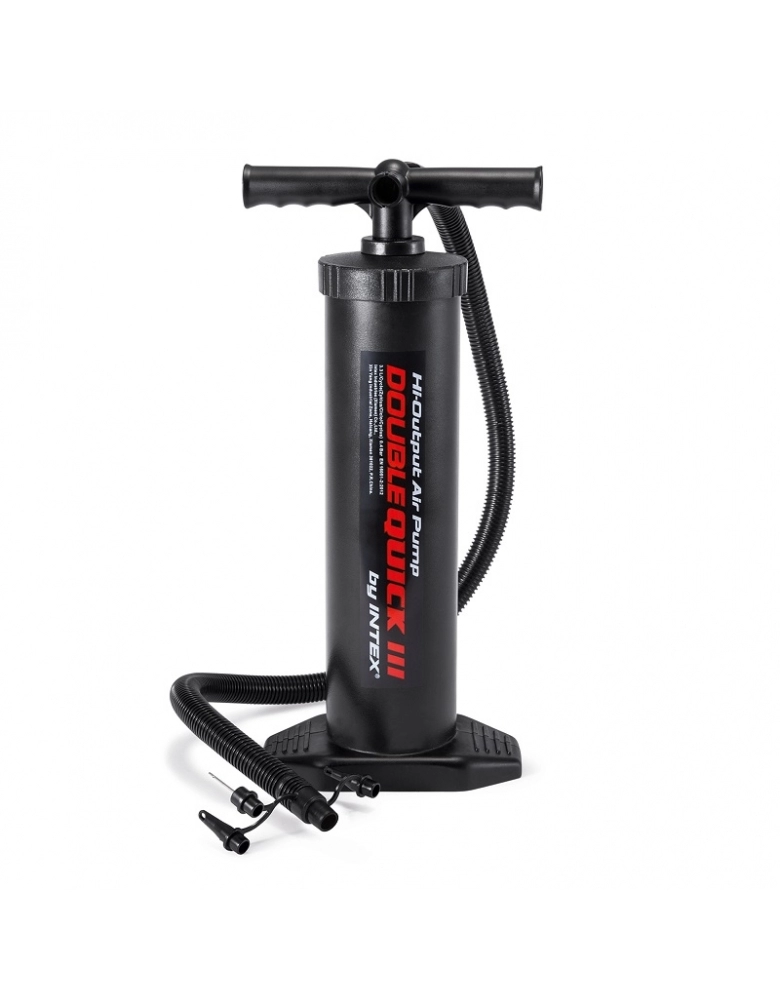 Bomba de ar para colchões, barcos e outros produtos infláveis de tamanho grande. Ação dupla - entrada de ar durante o movimento de subida e descida do cursor. Infla e desinfla - apenas mudando a conexão.