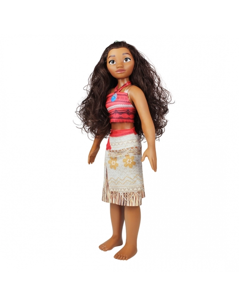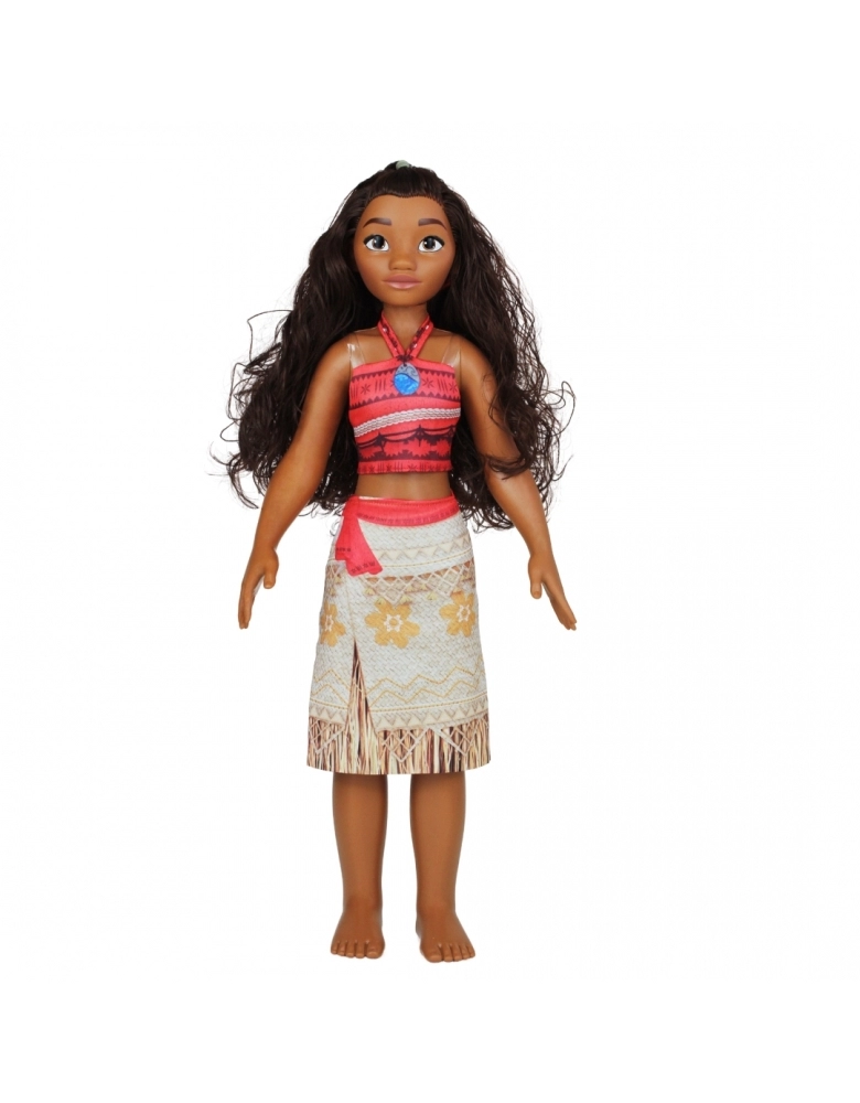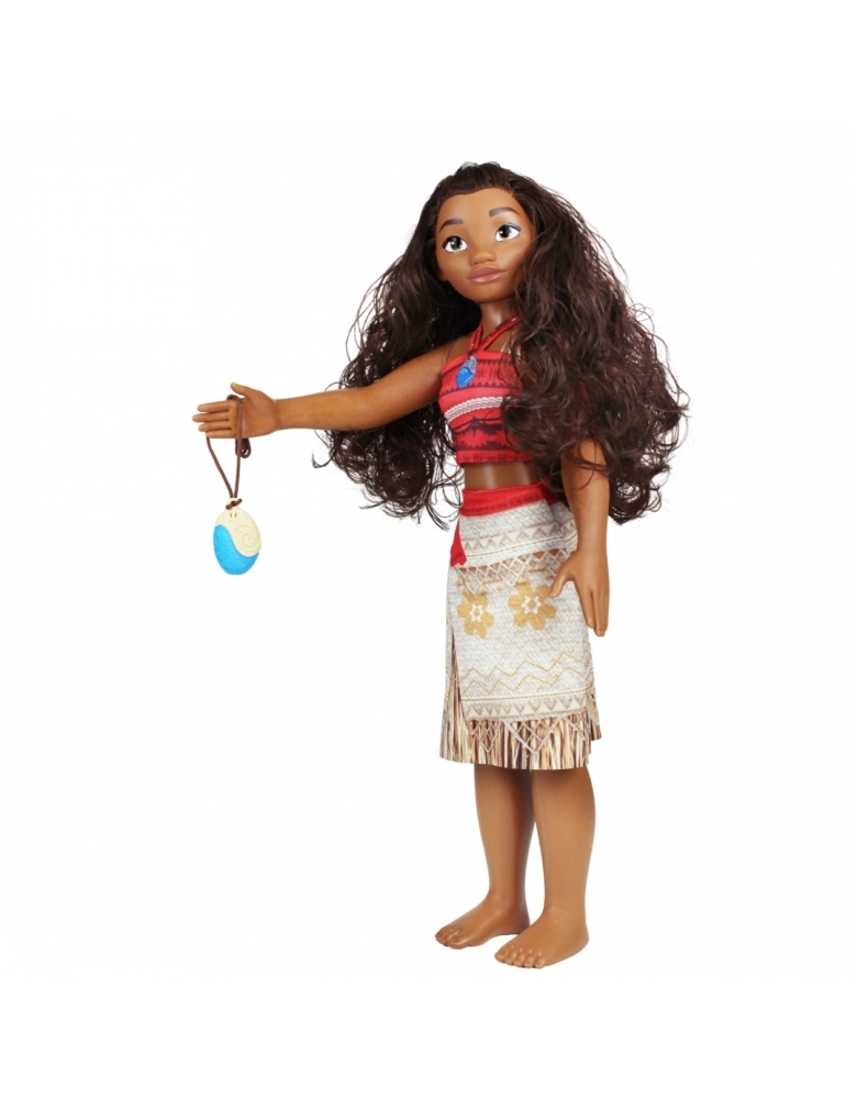 Boneca em vinil, cabelos castanhos longos enraizados, roupa em tecido, olhos em transfer, sem mecanismo, altura 55 cm, vem acompanhada de um colar para a criança, idade recomendada 3+.