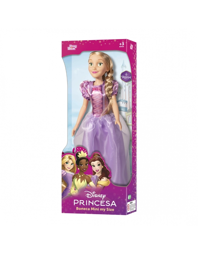 Sem mecanismo e recomendada para crianças a partir de 3 anos, a Boneca Rapunzel Mini My Size é perfeita para quem quer viver histórias de magia.