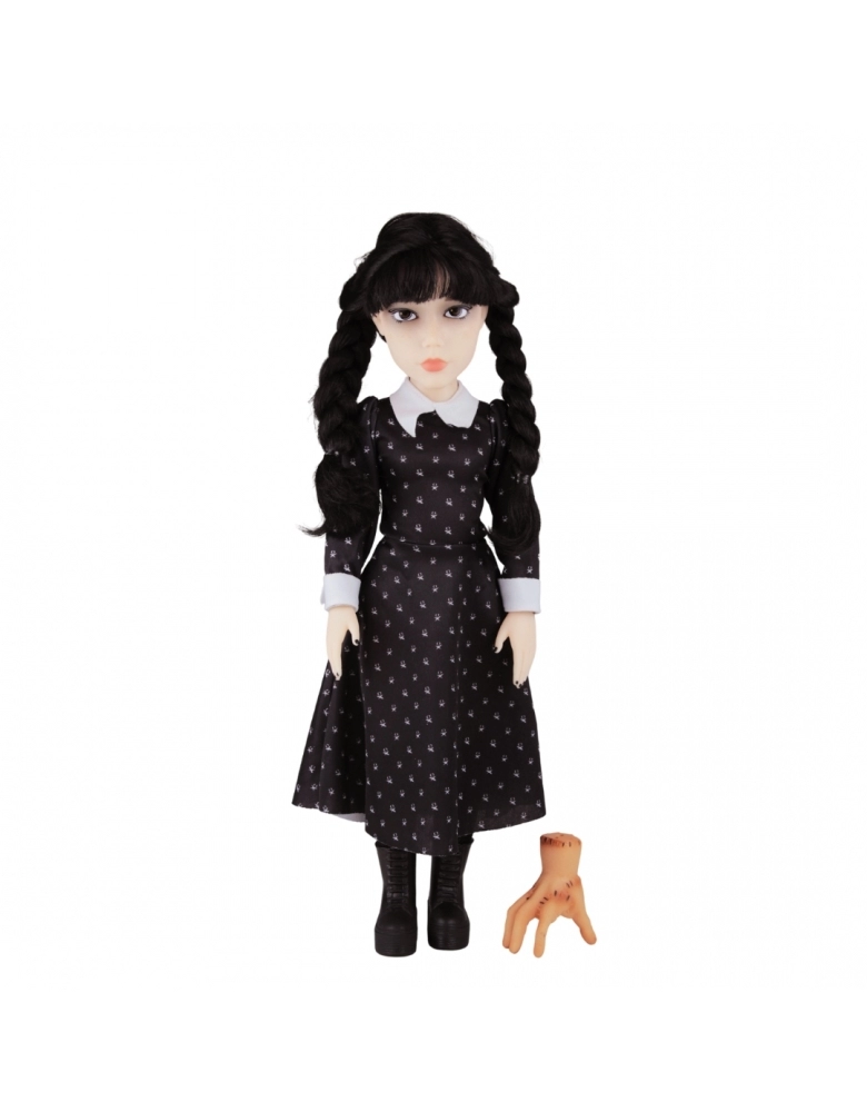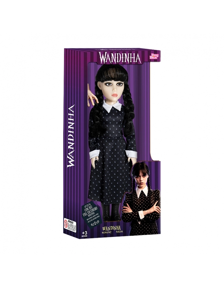 Entre no universo sombriamente encantador da Família Addams com a boneca da icônica Wandinha! Com 45 cm de altura, esta boneca da BABY BRINK captura toda a essência da personagem da série de sucesso da Netflix. Seus cabelos enraizados e roupa em tecido 100% poliéster adicionam um toque de realismo, enquanto suas articulações nos braços, pernas e cabeça oferecem uma ampla gama de poses e expressões. Além disso, ela vem acompanhada de sua fiel companheira, a Mãozinha, em vinil, com 6 cm de altura. Sem mecanismo e recomendada para crianças a partir de 3 anos, esta boneca é perfeita para os fãs da Família Addams embarcarem em suas próprias aventuras sombrias!