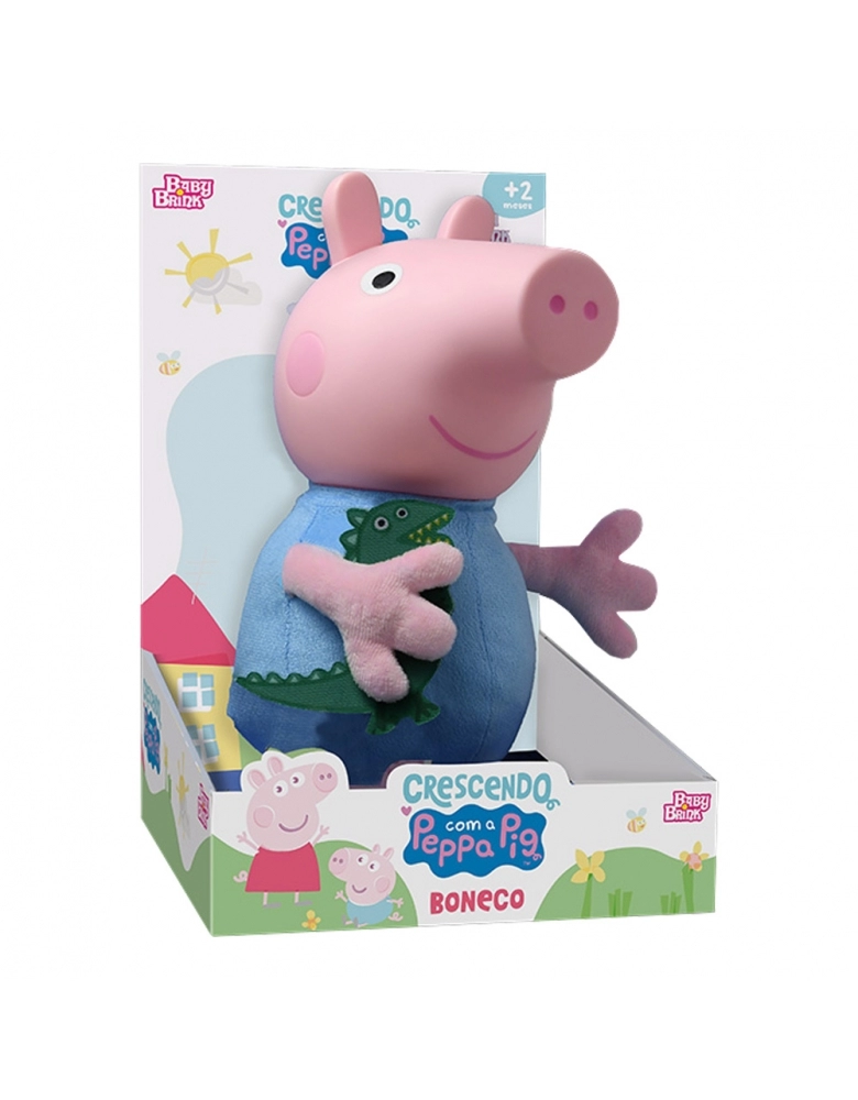 Conheça o adorável boneco do personagem pré-escolar, George! Como irmão da Peppa Pig, esses porquinhos são os favoritos das crianças. O boneco George é feito com um corpinho e membros macios, preenchidos com 100% poliéster, e veste uma roupinha em tecido encantadora. Sua cabeça em vinil proporciona um toque de realismo à brincadeira. Com 32 cm de altura, este boneco acompanha seu brinquedo favorito, o Dinossauro, feito em tecido. Embalado em display aberto para uma apresentação cativante. Indicado para crianças a partir de 2 meses de idade, o boneco George é uma companhia divertida e fofinha para os pequenos!