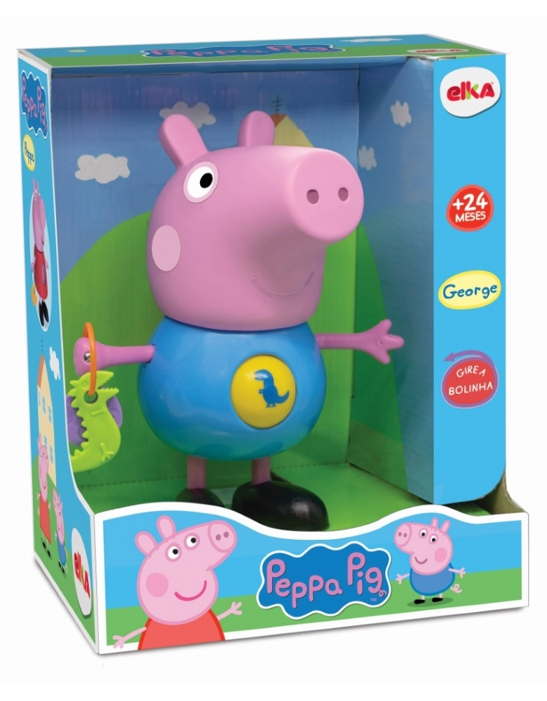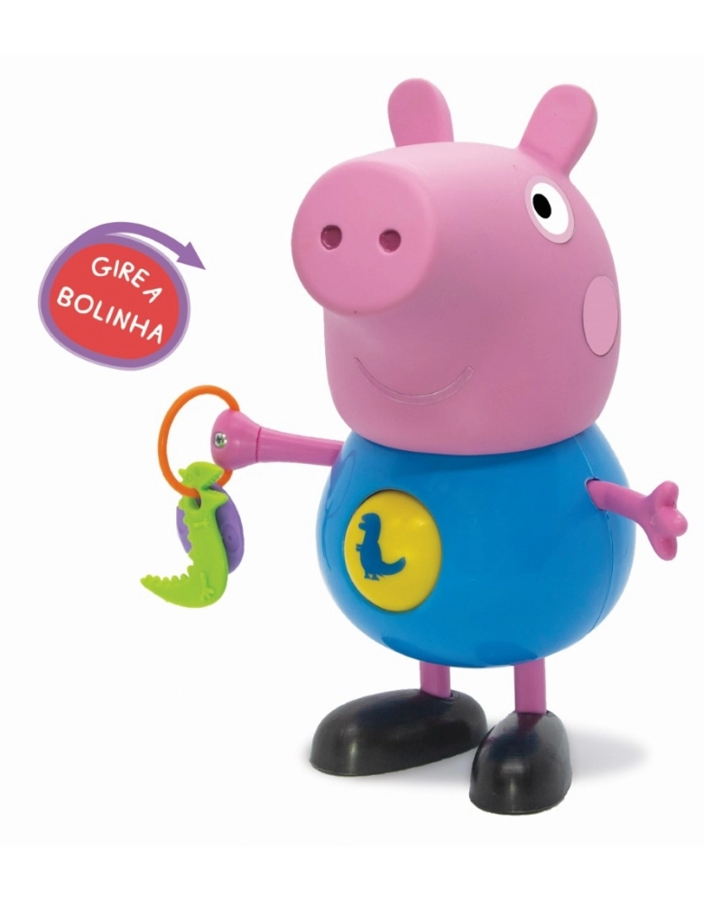 Brinque com o super boneco do George. Boneco com 24 cm de altura, bolinha que gira na barriguinha, e os brinquedos preferidos dele na mão.