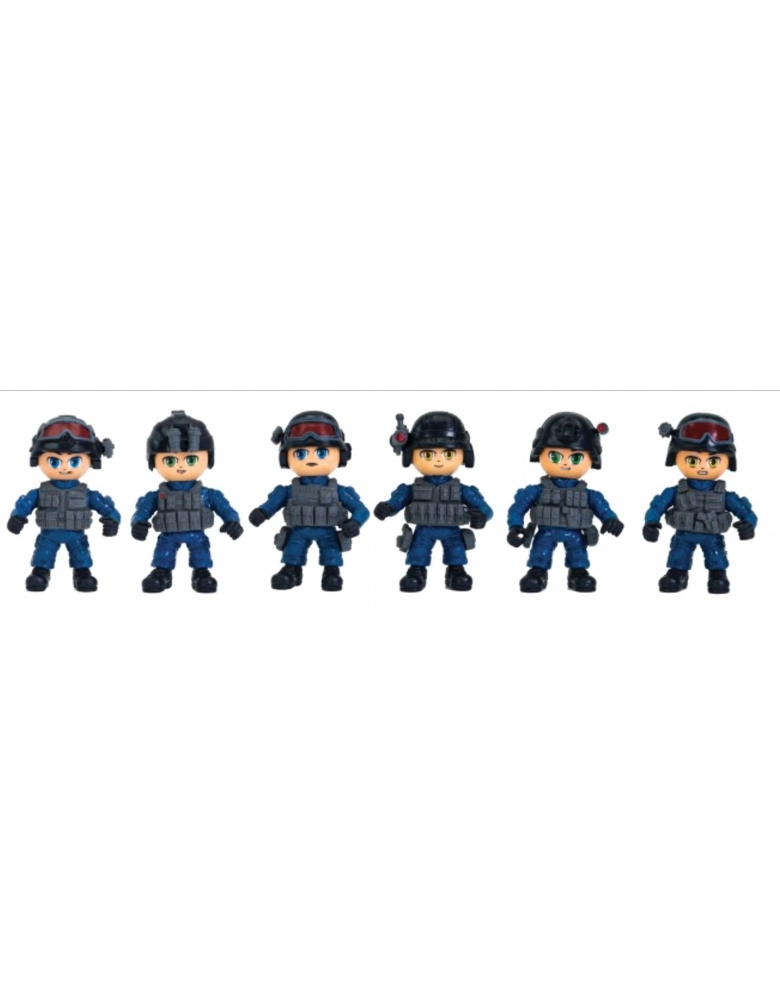 São 6 modelos diferentes de agentes especiais para colecionar, cada um com características únicas, como equipamentos de comunicação e visores táticos, prontos para qualquer missão!