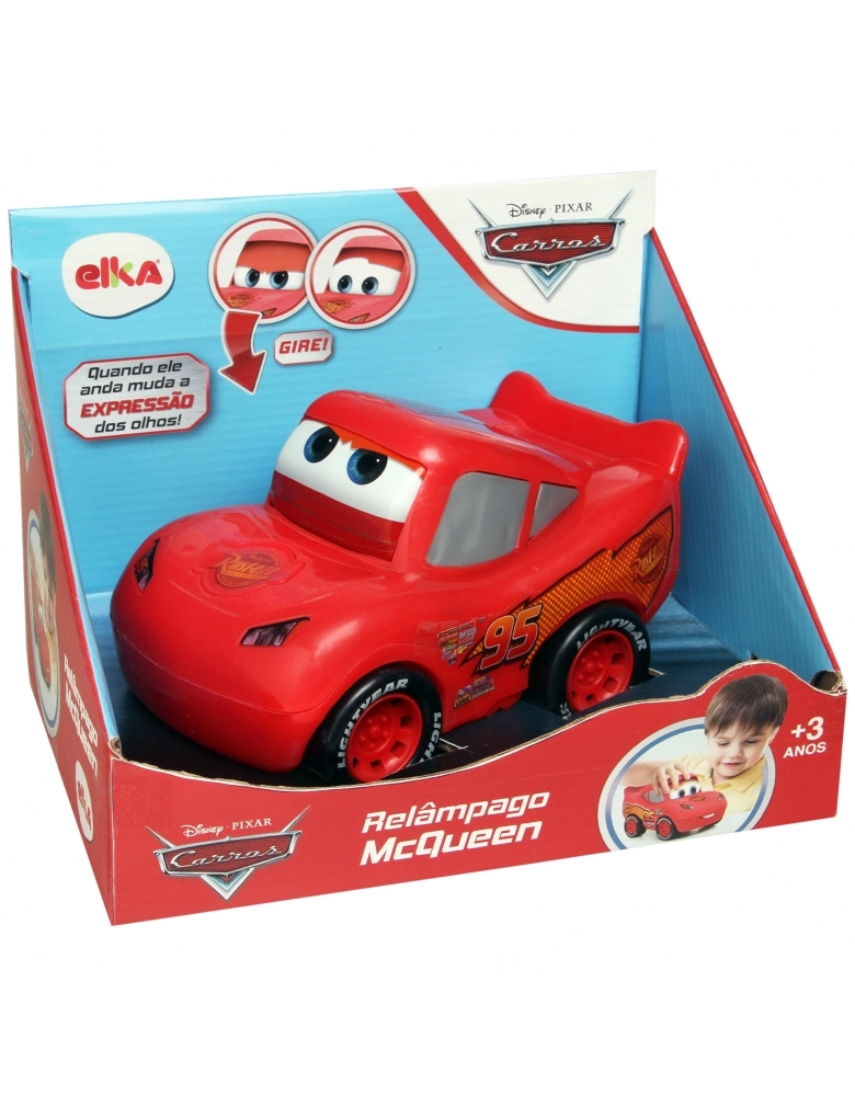 Boneco Relâmpago Mcqueen, quando ele anda, os olhos giram e mudam de expressão! Desenvolve a coordenação motora, estimula o faz de conta e a criatividade.