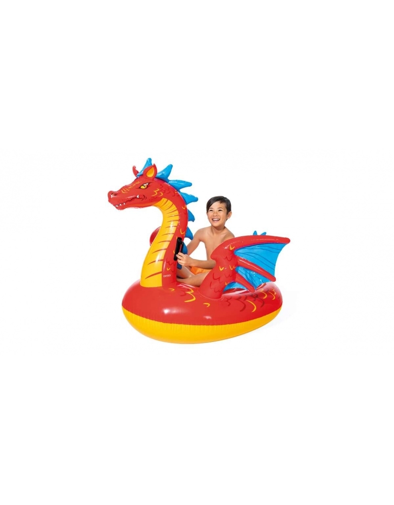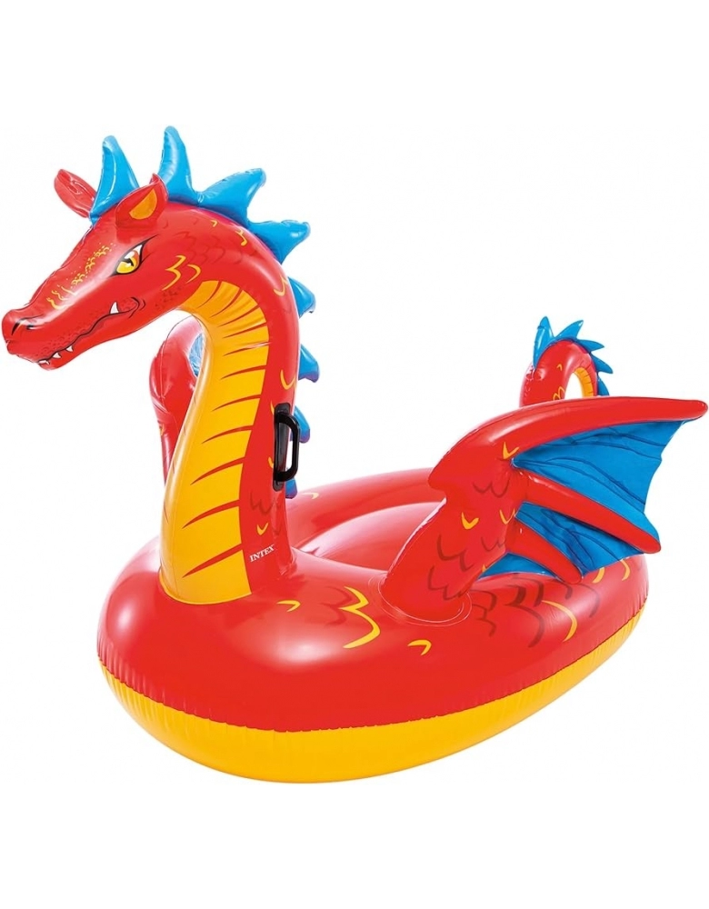 Aproveite na piscina ou na praia com esta boia inflável em forma de dragão. O seu fantástico design em vermelho com detalhes em amarelo e azul irá captar a atenção de todos os banhistas.