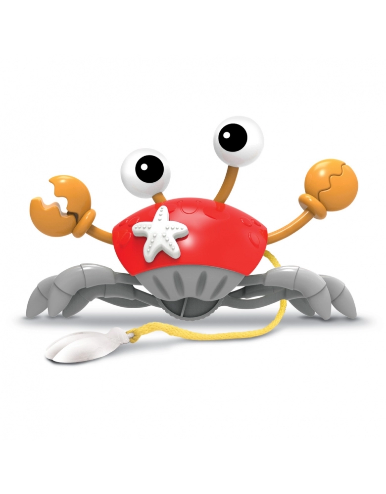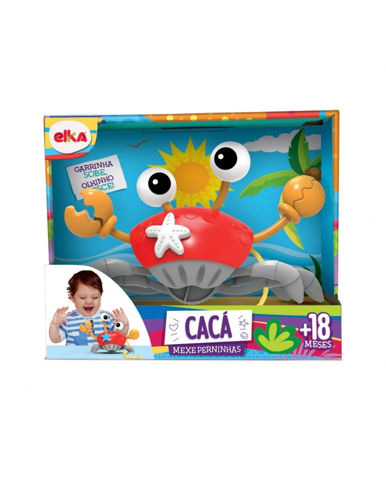 Cacá, o carangueijo cheio de atividades! Todo engraçadinho. Puxando a cordinha ele sai andando, mexendo as perninhas. Olhinhos e garrinhas sobem e descem. Auxilia no desenvolvimento das habilidades motoras