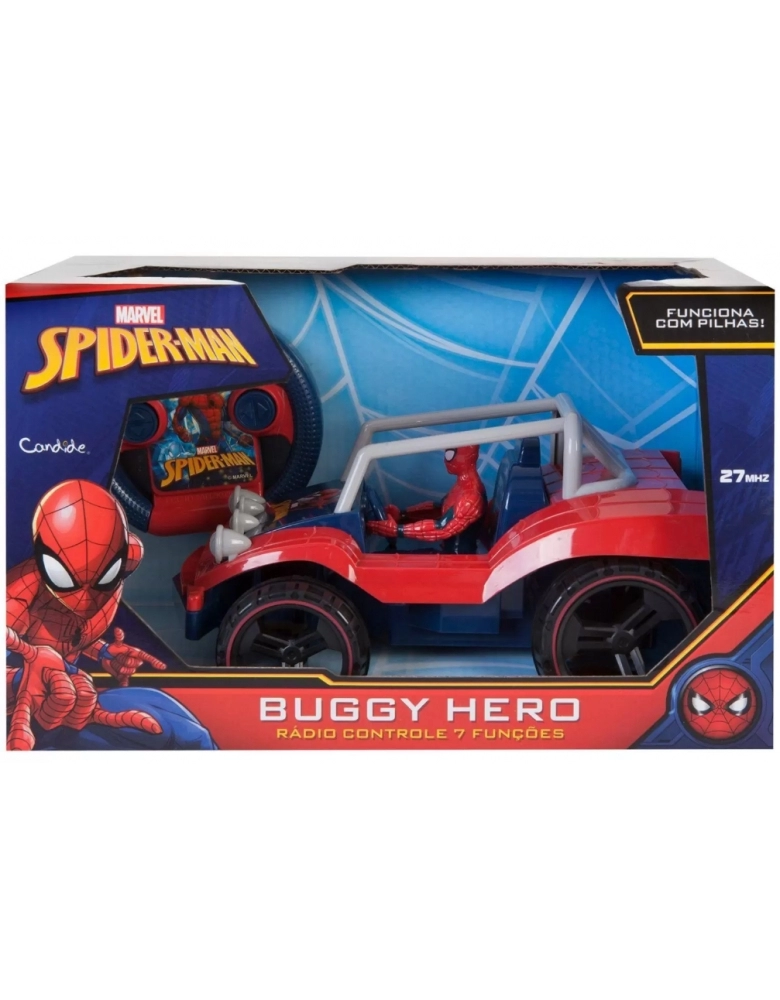 O Peter Parker está em uma grande aventura! E você poderá ajudá-lo com o veículo rádio controlado Buggy Hero do Homem-Aranha! Um carrinho de controle remoto com 7 funções que pode ser pilotado para todas as direções e um design arrojado! E ele ainda vêm com o Homem-Aranha dirigindo esse incrível veículo! As brincadeiras vão ficar muito mais radicais com o veículo Action & Speed!