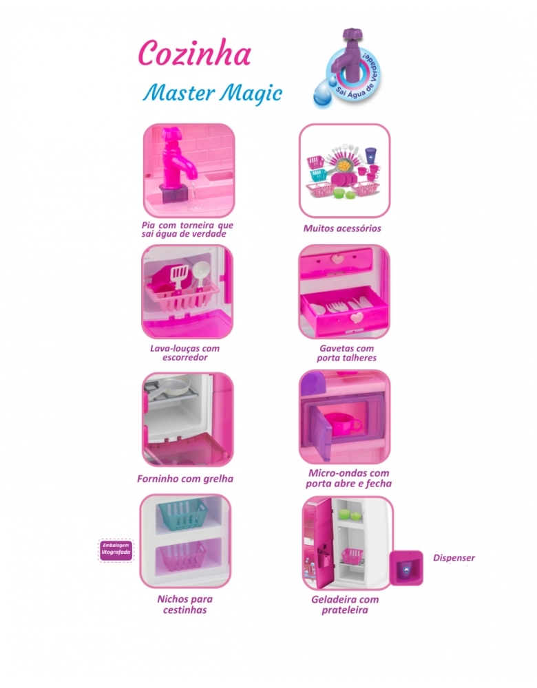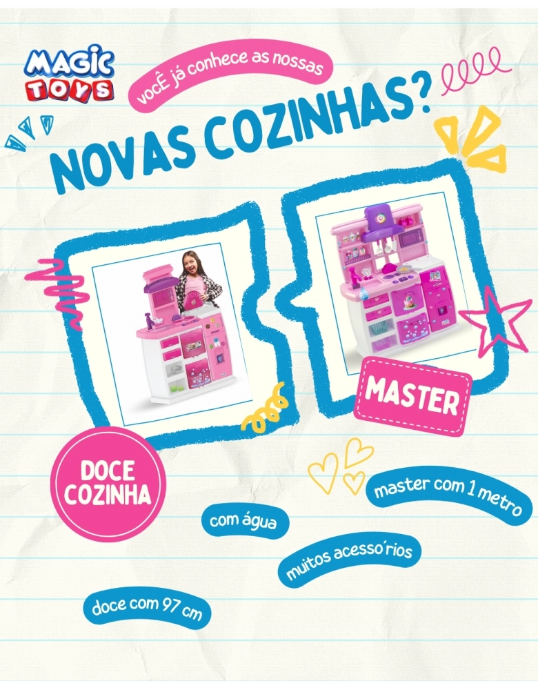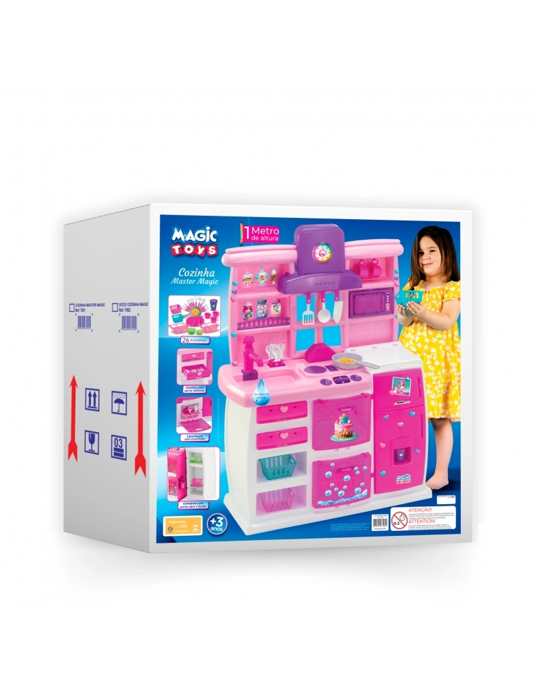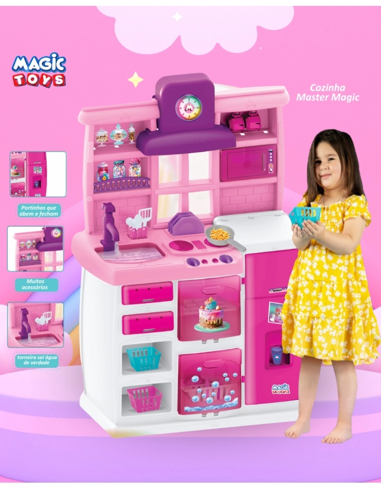 A Cozinha Master Magic foi criada para transformar o faz de conta em uma verdadeira experiência gastronômica! Com design moderno e cheia de recursos interativos, é ideal para crianças que amam brincar de casinha e cozinhar com criatividade.