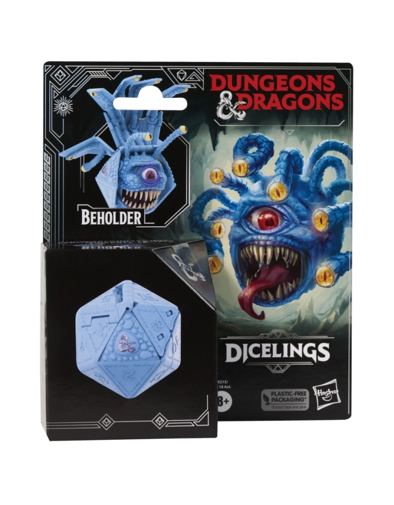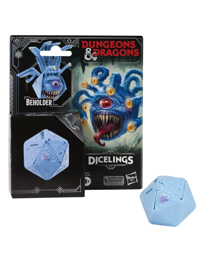 Laçar os dados para a aventura! Dê uma olhada no Observador azul, um dos muitos monstros que povoam os reinos de Dungeons & Dragons. Com Dicelings, agora os fãs podem ter uma figura D&D totalmente nova: uma que se pode transformar de um d20 gigante em um monstro e vice-versa! TM & ©2023 Wizards of the Coast LLC Hasbro and all related terms are trademarks of Hasbro.