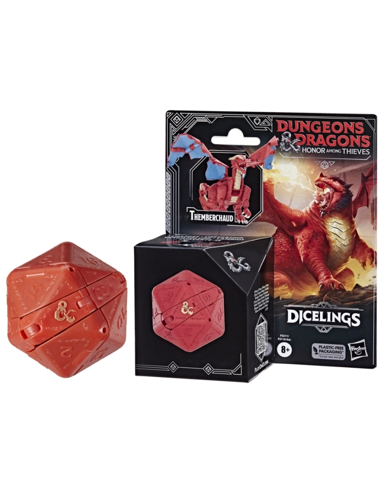 Laçar os dados para a aventura! O poderoso Dragão Vermelho Themberchaud é um dos muitos monstros que povoam os reinos de Dungeons & Dragons. Com Dicelings, agora os fãs podem ter uma figura D&D totalmente nova: uma que se pode transformar de um d20 gigante em um monstro e vice-versa! TM & ©2023 Wizards of the Coast LLC Hasbro and all related terms are trademarks of Hasbro.