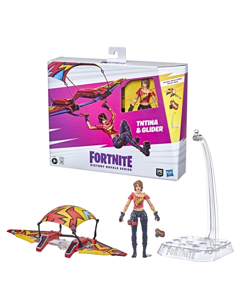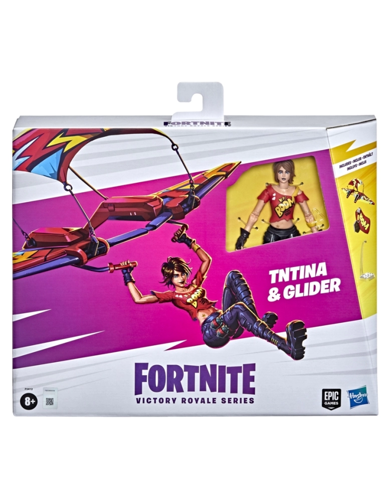 Chegou a hora de montar um esquadrão e desbloquear o lendário universo do jogo Fortnite... no mundo real! A série Victory Royale leva as figuras Fortnite para o próximo nível com designs e poses altamente ajustáveis, e detalhes baseados nas roupas dos personagens favoritos dos fãs do videogame Fortnite. Nunca se sabe quem vai entrar em sua próxima batalha, mas sempre lembre-se de agradecer ao motorista do ônibus. TNTina salta do Battle Bus e plana para a Victory Royale Series! Esta figura de 15 cm possui o famoso traje do personagem com decoração e detalhes do nível de jogo. Vem com Kabag! Back Bling. Também inclui o planador Wild Blast. É possível colocar a figura em posições de batalha épicas ou em movimentos de dança graças aos mais de 20 pontos de articulação! Outras figuras Fortnite Victory Royale Series disponíveis para brincar!