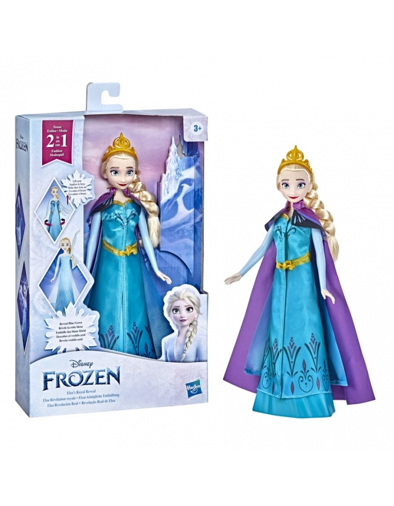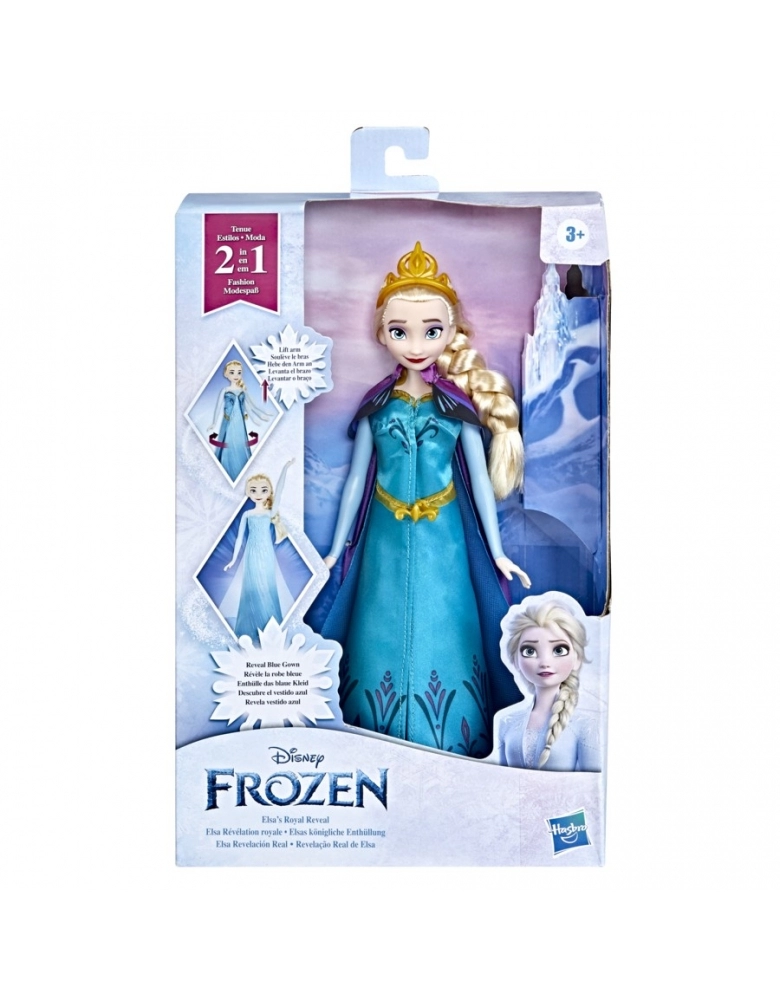 Depois de revelar os seus poderes no dia da coroação, Elsa foge do reino de Arendelle para o topo de uma montanha. Lá ela aceita a sua identidade e cria o seu famoso vestido azul enquanto constroi o seu próprio castelo de gelo. As crianças podem remover a capa e a tiara de Elsa e levantar o seu braço para revelar o vestido azul que está por baixo do traje da coroação. O traje azul é uma base moldada para que a boneca fique de pé. As crianças podem alternar facilmente os trajes para imaginar diferentes histórias com as suas personagens favoritas. A boneca vem com uma capa e uma tiara para completar o seu visual. Este brinquedo Frozen é um excelente presente para crianças que adoram as personagens do filme Frozen da Disney. As crianças podem se divertir com outros brinquedos Frozen, como a boneca da Anna e a figura do Olaf.