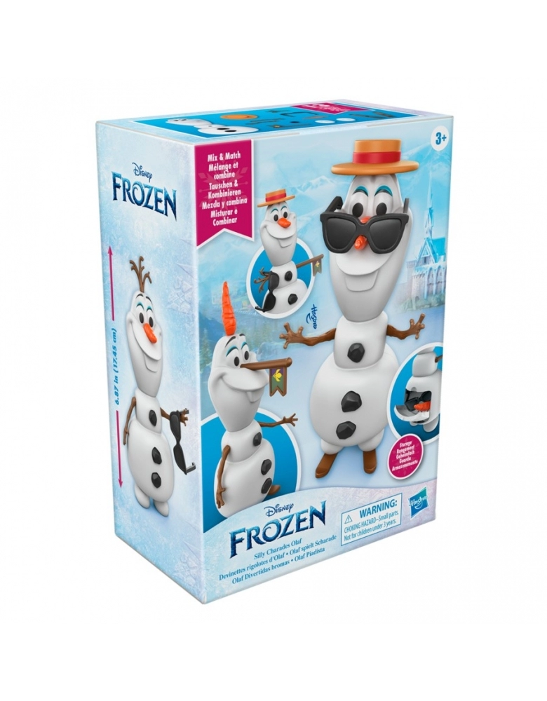 No filme Frozen 2 da Disney, Olaf sempre faz os seus amigos sorrirem. As crianças vão adorar brincar com o Olaf Show de Piadas. As crianças podem arrumar as peças para mudar a aparência do Olaf como no filme Frozen. As crianças vão rir com as peças do Olaf colocadas em lugares diferentes. O brinquedo vem com um espaço de armazenamento para guardar todas as peças. Este kit vem com chapéu, óculos de sol, bandeira, 2 braços, cabelo, nariz de cenoura, 2 skis, 2 pés e botão de carvão.