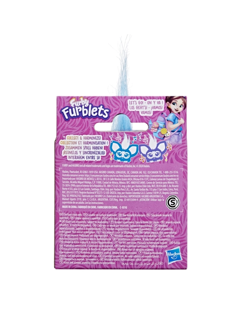 Este mini brinquedo eletrônico Furby para meninos e meninas a partir dos 6 anos toca música e fala furbilês (não fala idiomas humanos). Pode ser pendurado em uma mochila ou em outra bolsa de viagem com o clipe de chaveiro para levar a festa dos Furblets para qualquer lugar. Colocá-los lado a lado para que cantem juntos! Furby e todas as propriedades relacionadas são marcas registradas da Hasbro.