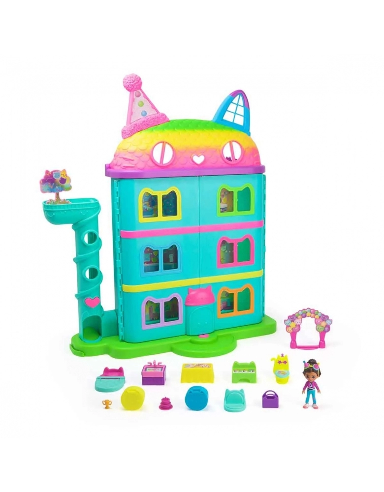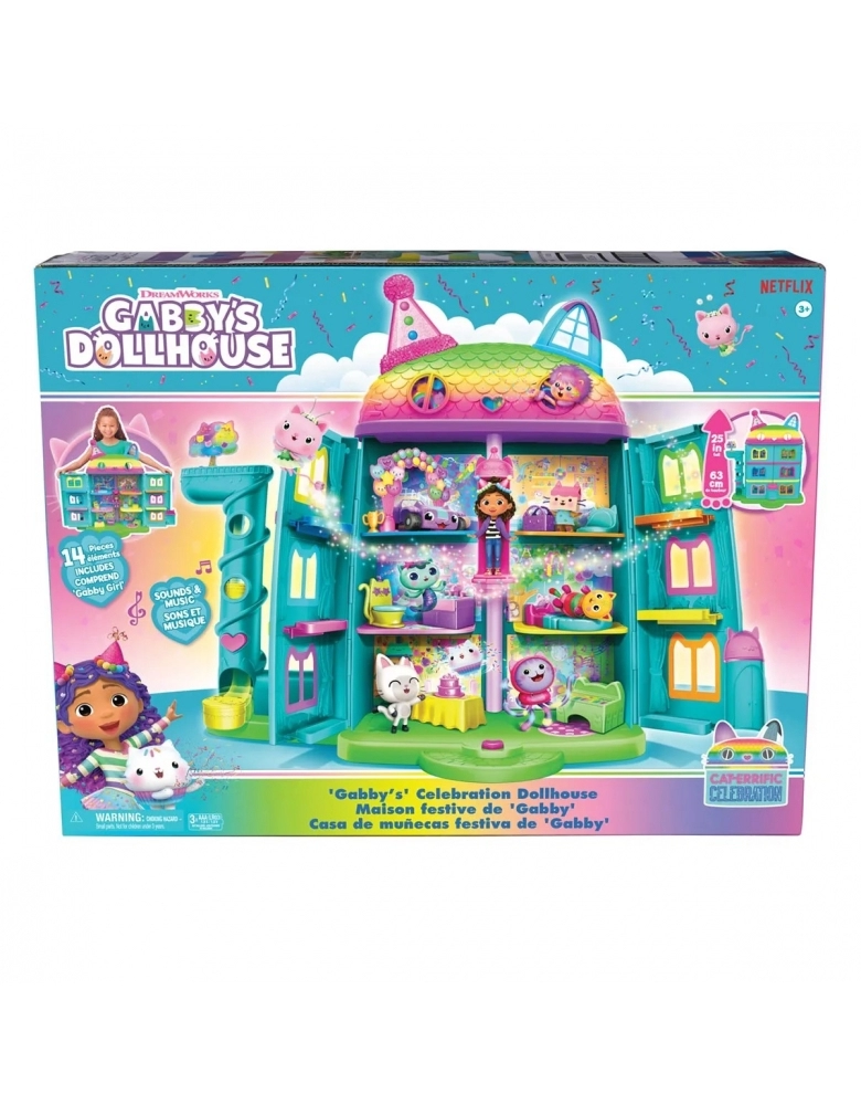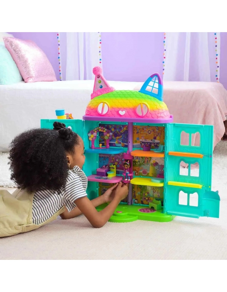 Explore o mundo encantador da Gabby’s Celebration Dollhouse, uma obra-prima com tema de arco-íris de 60 centímetros de altura! Liberte a criatividade com a figura de brinquedo Gabby Girl de 3,5 polegadas, móveis de casa de bonecas e 10 acessórios, como um banheiro com tema de gatinho, uma mesa de piano/DJ e muito mais! Entre na mesa do DJ e use o Cat-A-Vator para acessar seis salas e uma área de recreação na cobertura. Deixe as entregas na torre de entrega e pressione o botão para descobrir tesouros secretos, depois abra a casa de bonecas para ouvir 6 efeitos sonoros do show. Os brinquedos Gabby’s Dollhouse para meninas e meninos são ótimos presentes para crianças que são fãs da série de sucesso da Netflix e gostam de construir mundos de casas de bonecas de faz de conta. RECURSOS INTERATIVOS CAT-TASTIC: Ande no Cat-A-Vator para explorar 6 salas diferentes e vire o telhado para revelar um sótão escondido no 4º andar e aperte um botão para ouvir 6 efeitos sonoros do show! MÓVEIS DE CASA DE BONECAS MIAU-MAZING: Inclui acessórios super fofos para casa de boneca, como um arco de balão, um vaso sanitário com tema de gatinho, uma pia de banheiro, uma cadeira, uma cama, uma mesa de buffet, uma mesa de piano/DJ, uma sacola de presentes! MÓVEIS DE CASA DE BONECAS MIAU-MAZING: Inclui acessórios super fofos para casa de boneca, como um arco de balão, um vaso sanitário com tema de gatinho, uma pia de banheiro, uma cadeira, uma cama, uma mesa de buffet, uma mesa de piano/DJ, uma sacola de presentes! CONSTRUA UM MUNDO DE CASA DE BONECAS: Com tudo, desde quartos temáticos e móveis de casa de boneca até bonecos e conjuntos de brinquedos, crie um mundo de casa de boneca para ajudar as crianças a desenvolver sua imaginação através de brincadeiras de faz de conta!