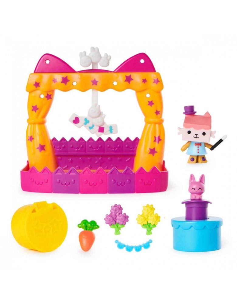 Entre no mundo mágico da casa de bonecas de Gabby com o conjunto de jogos com varanda para show de talentos da Baby Box Cat! Apresentando uma figura de brinquedo Baby Box de 2 polegadas, móveis de casa de bonecas e 6 acessórios de casa de bonecas, incluindo um chapéu mágico e amuletos de varanda. Gabby's Dollhouse para meninas e meninos são ótimos presentes para crianças que são fãs da série de sucesso da Netflix e gostam de construir mundos de casas de bonecas de faz de conta. "VARANDA DE CASA DE BONECAS CAT-TASTIC: Crie brincadeiras imaginativas sem fim com o conjunto de jogos de varanda para show de talentos da Baby Box Cat. Coloque a Baby Box e os móveis da casa de bonecas na varanda para uma celebração incrível!